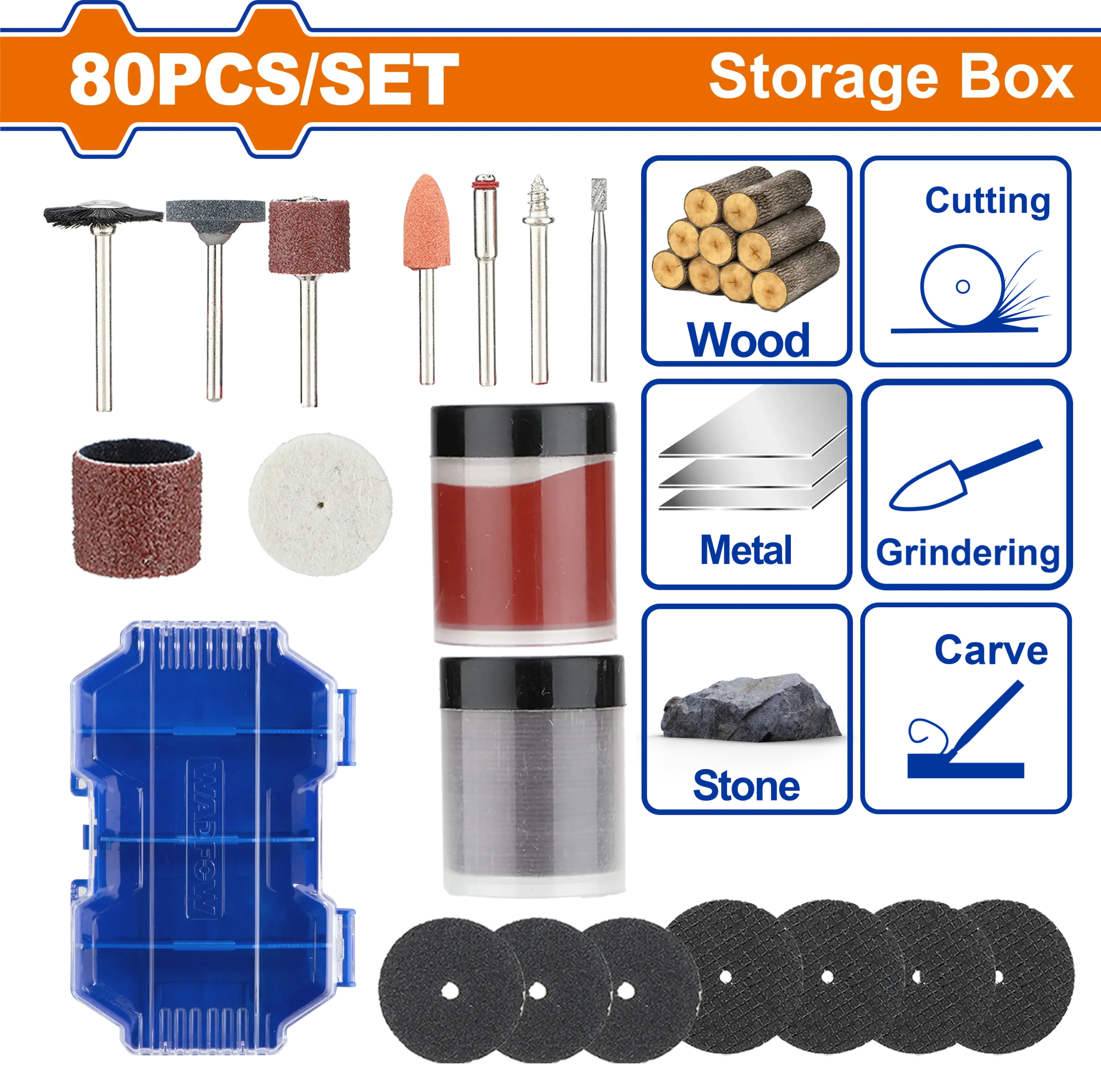 • Producto: ACCESORIOS MINI TALADRO 80 PIEZAS WADFOW