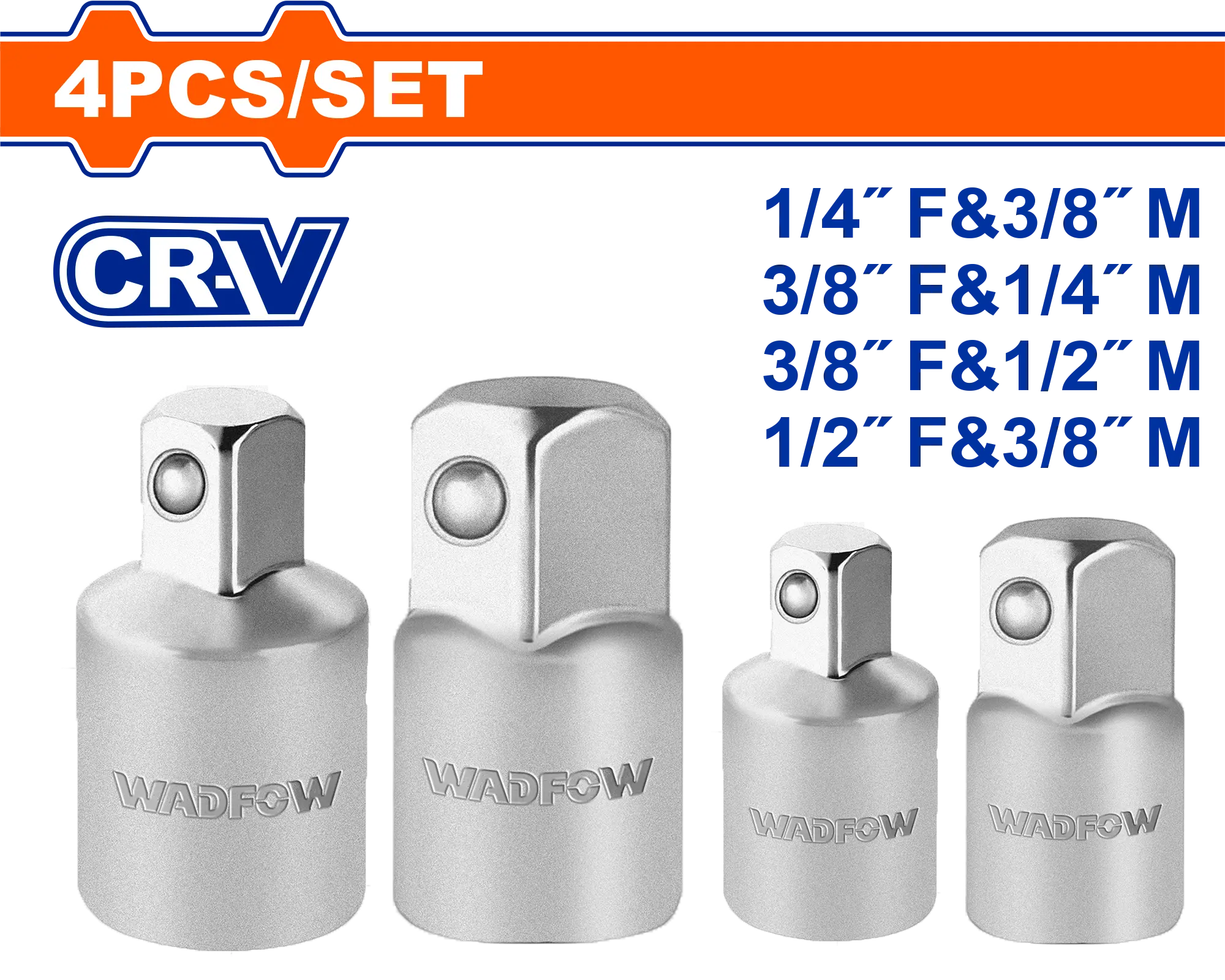 Tamaño: 1/4″ (H) y 3/8″ (M), 3/8″ (H) y 1/4″ (M), 3/8″ (H) y 1/2″ (M), 1/2″ (H) y 3/8″ (M).
