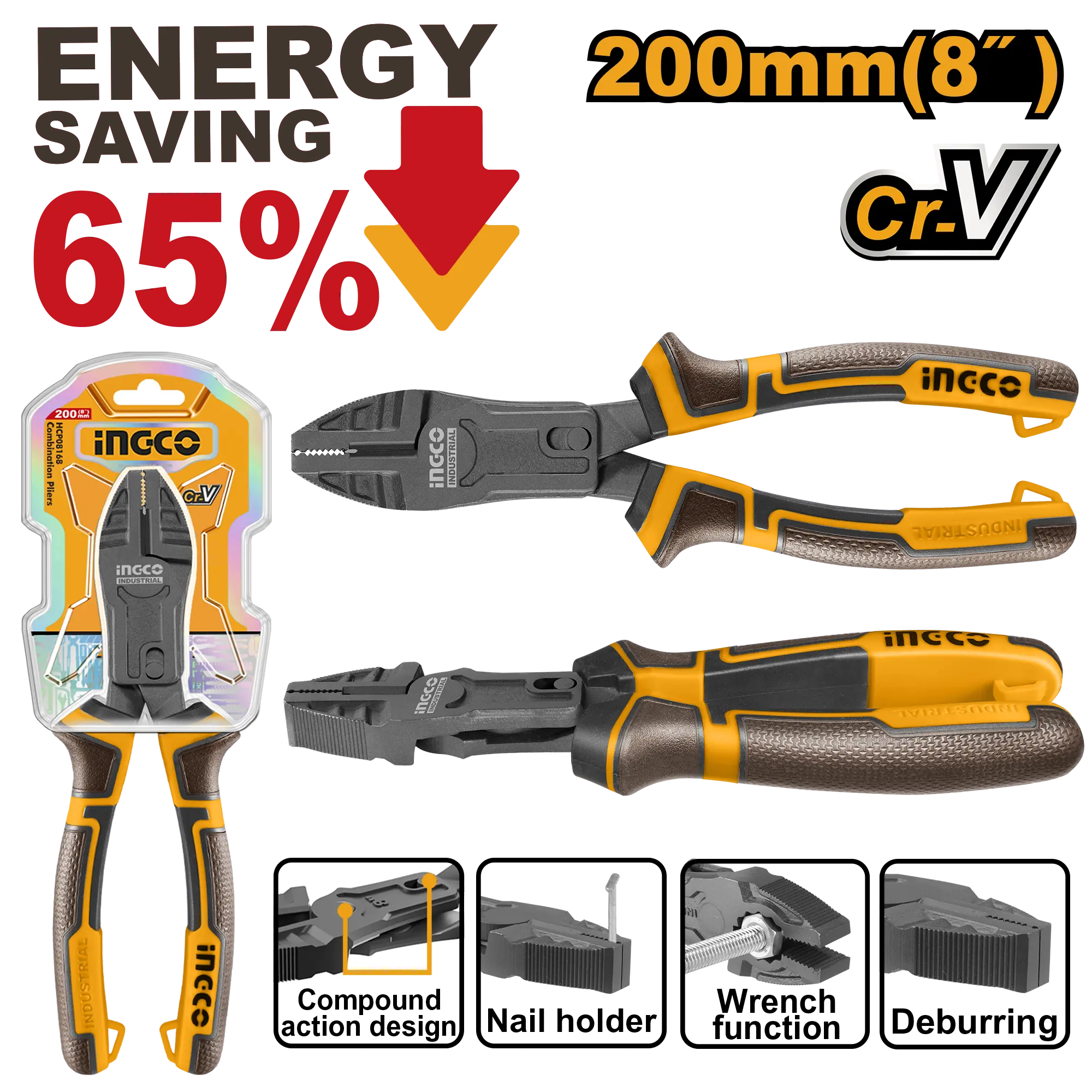 Ahorro de energía del 65 % en comparación con los alicates normales