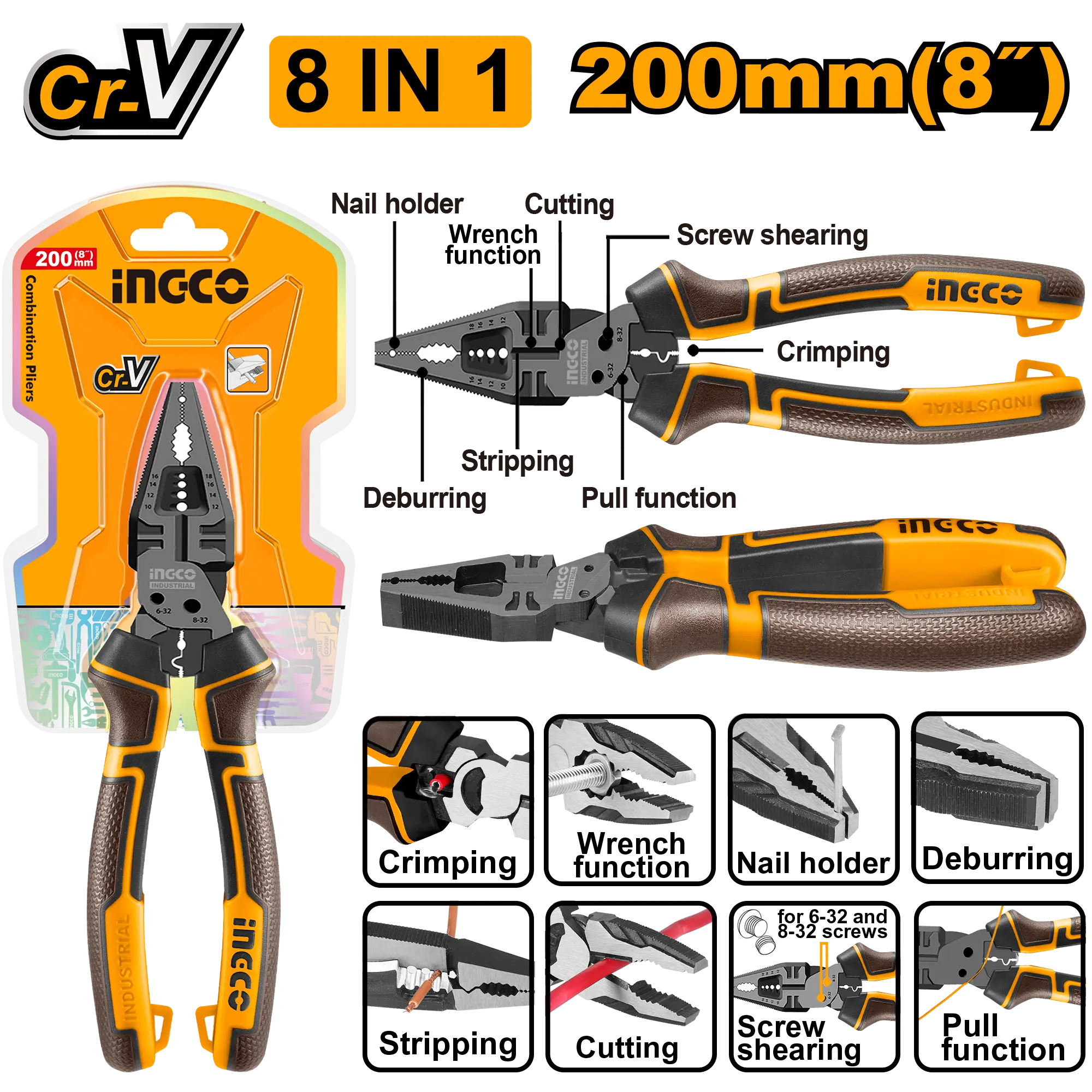 Alicates universales multifunción 8 en 1 Tamaño: 8″/200 mm