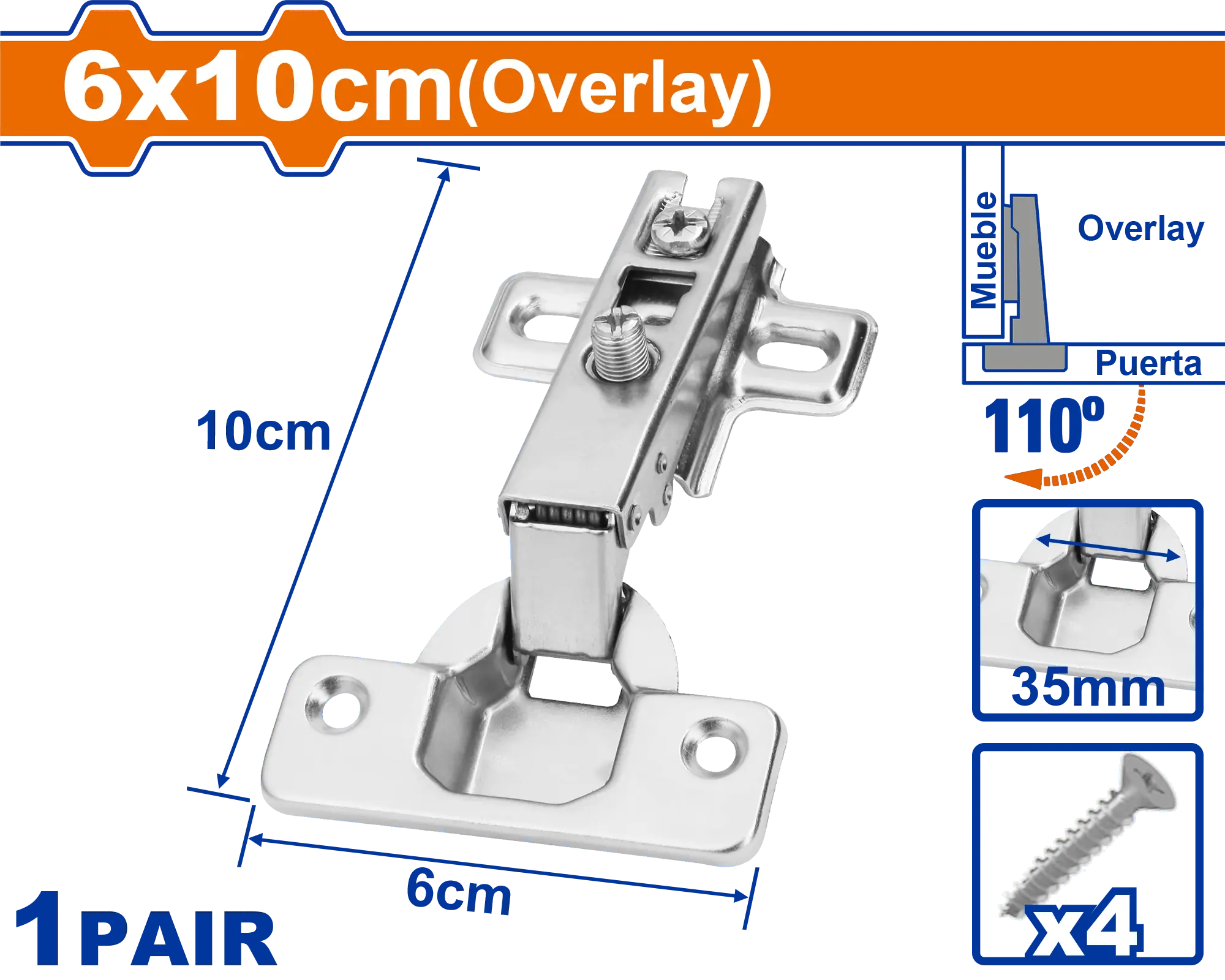 • Producto: BISAGRAS DE GABINETE SUPERPUESTA 6X10CM WADFOW
