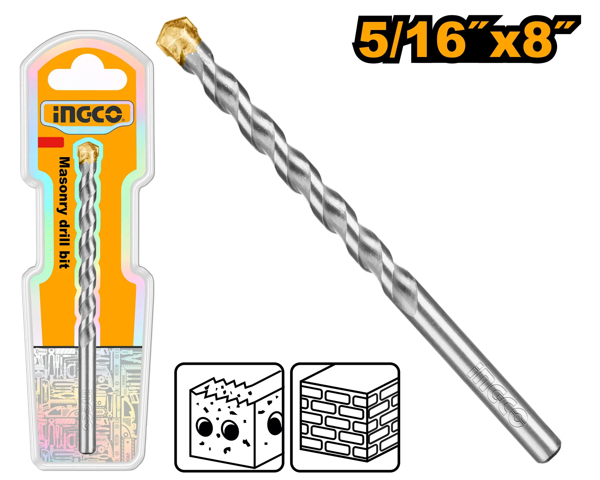 Diámetro 5/16″ X 8″ (7.94 mm) Punta de carburo duradera para una vida útil más prolongada en concreto y agregados duros Adecuado para perforar cemento. concreto. ladrillo y bloques Embalado en blíster doble