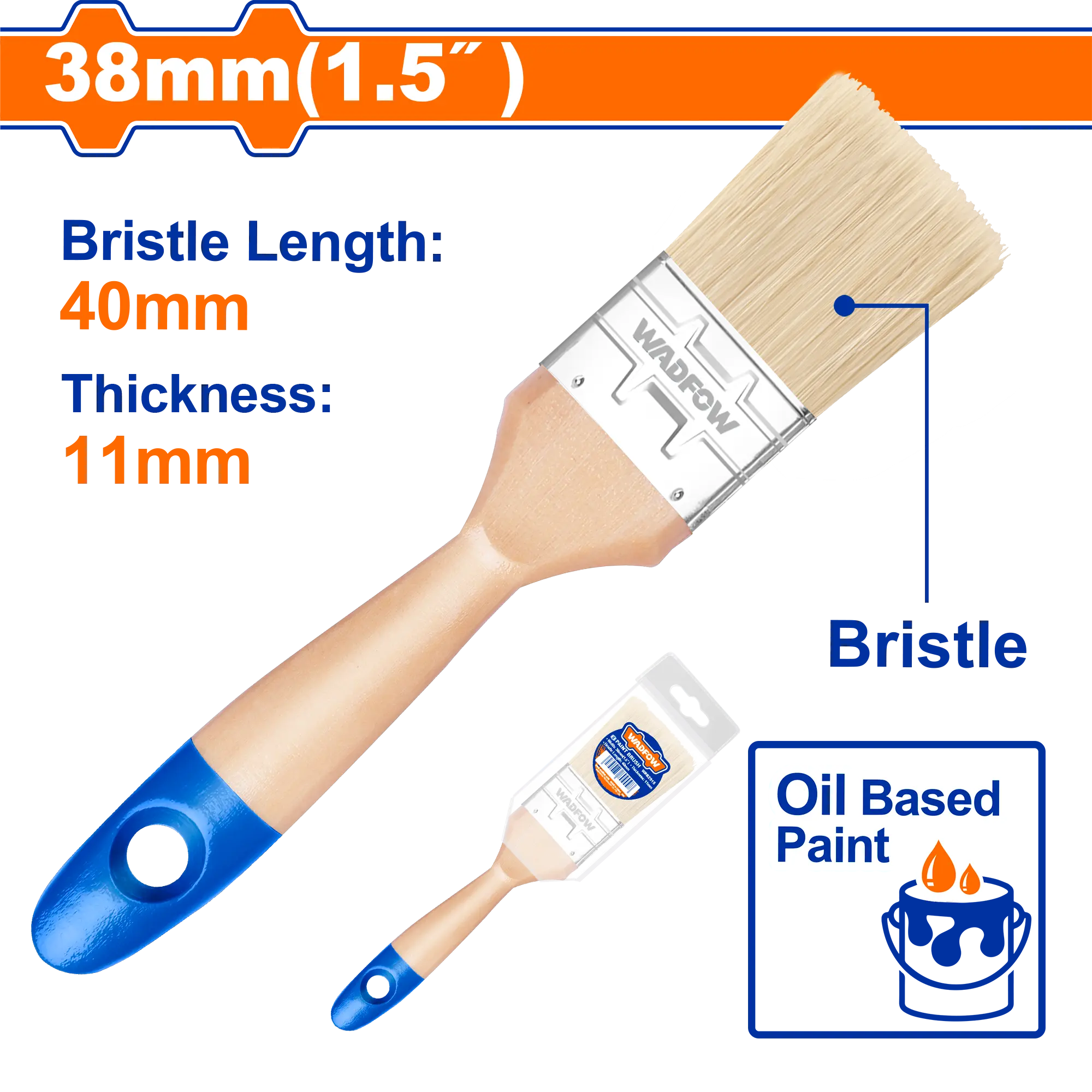 BROCHA PARA PINTURA DE 1.1/2″ WADFOW) es un herramienta manual dentro de la categoría Herramientas manuales. Marca detectada: Wadfow. Esta ficha usa buenas prácticas del tipo de herramienta y datos detectables del producto para resolver dudas del día a día sin inventar especificaciones. Datos detectados: Medida: 38 mm.