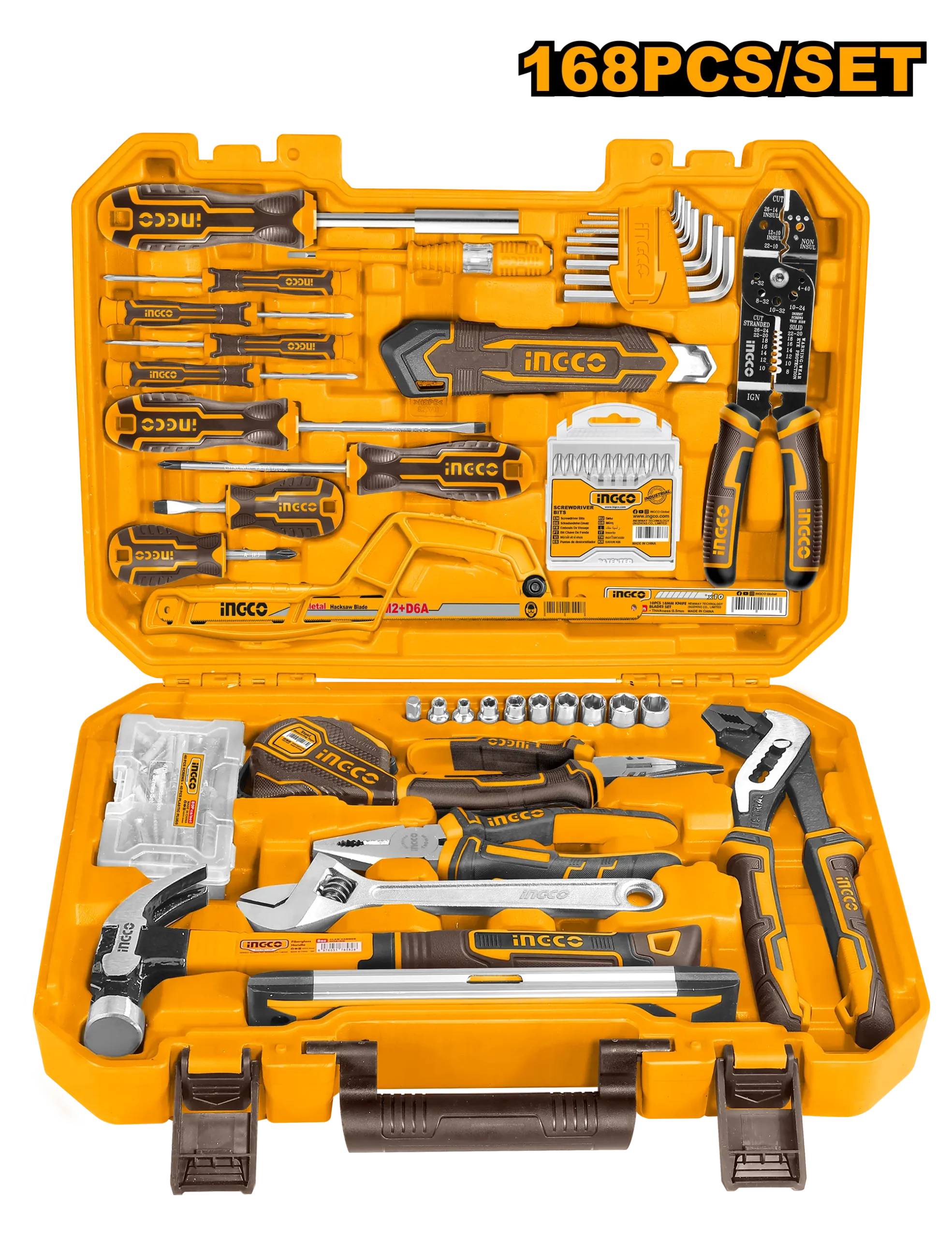 El juego de herramientas manuales de 168 piezas incluye: