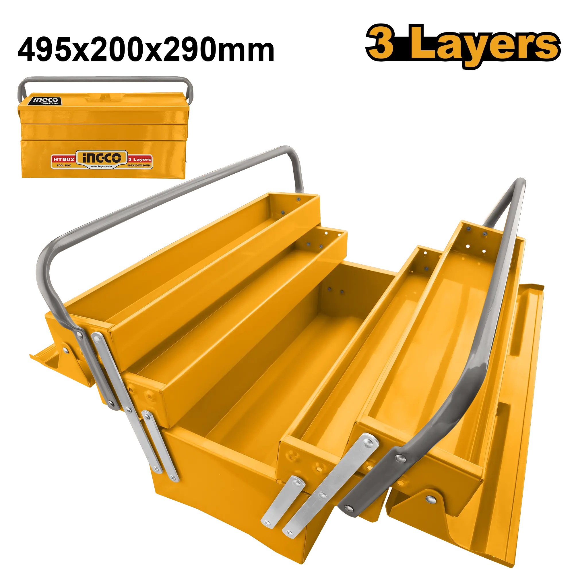 CAJA DE HERRAMIENTAS 495X200X290MM INGCO es un producto dentro de la categoría Herramientas manuales. Marca detectada: Ingco. Producto orientado a uso práctico según su nombre y datos detectables, con foco en compatibilidad y seguridad. Datos detectados: Medida: 290 mm. Nota: Tamaño: 495x200x290mmn3 capasnEspesor del acero: 0.