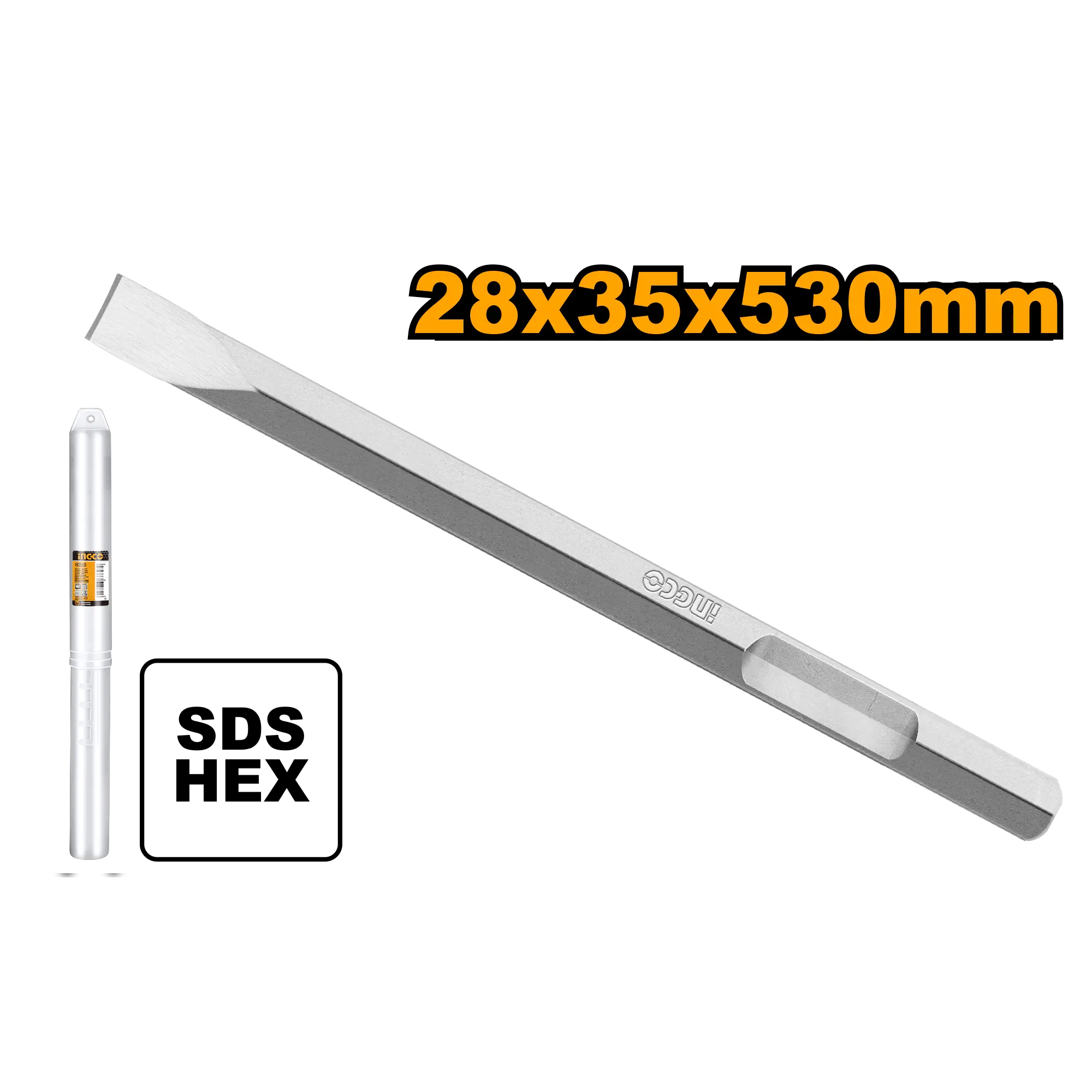 Cincel hexagonal. 28 x 35 x 520 mm. plano