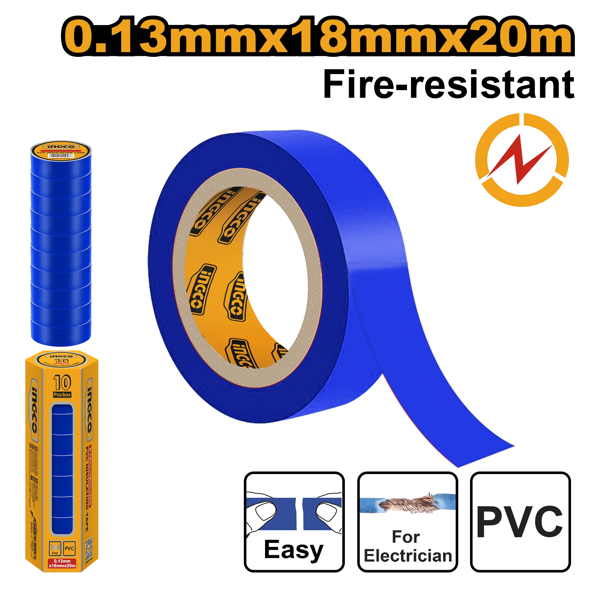 PVC Longitud: 20m Resistente al fuego Color: Azul Ancho: 18 mm Espesor: 0,13 mm Embalado por etiqueta