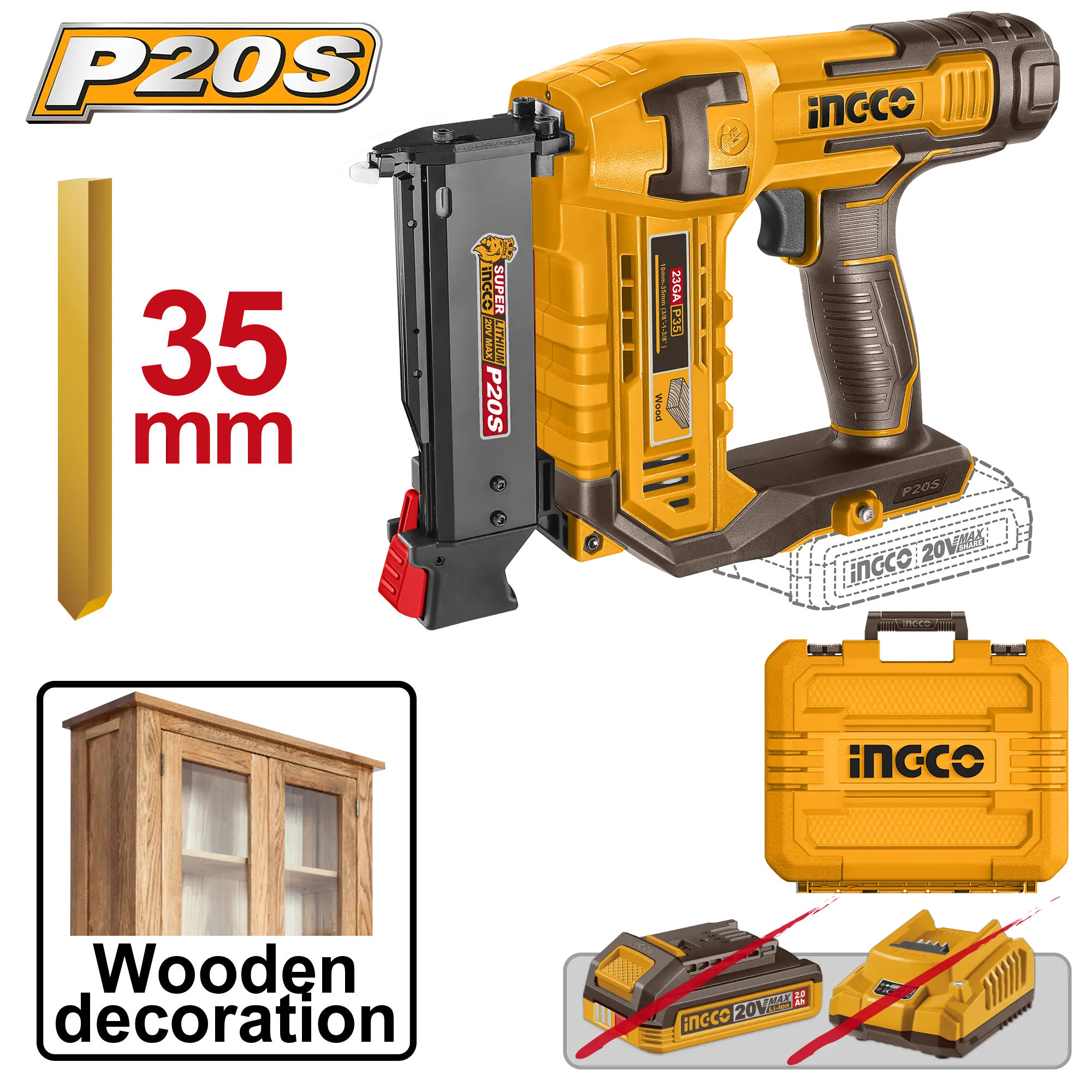 Voltaje: 20 V Tipo de clavadora: 10-35 mm Velocidad de accionamiento: 3 clavos/s Capacidad del cargador: 140 piezas