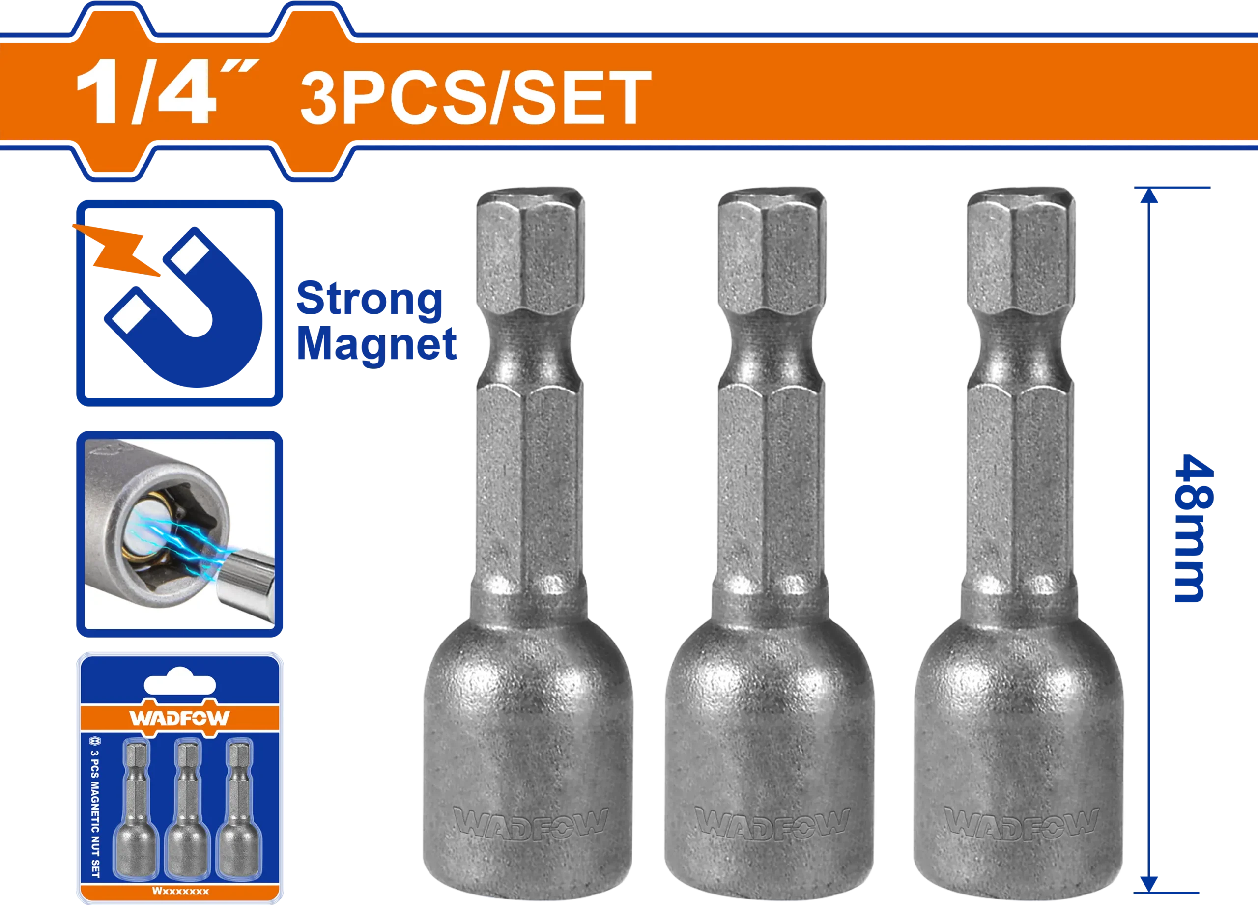 - Producto: COPA HEXAGONAL MAGNETICA 3PCS 1/4″ WADFOW