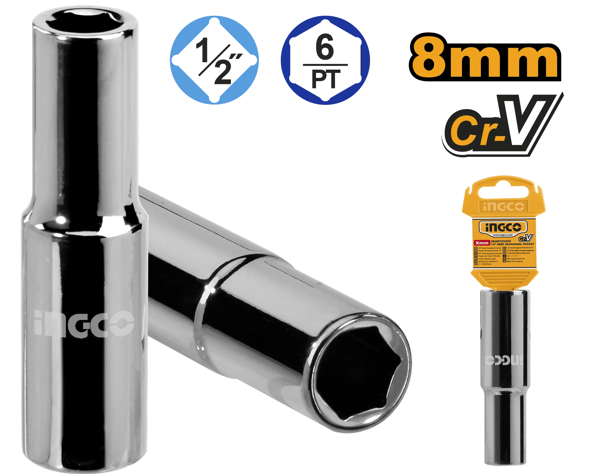 1/2″ «Deep Dr.6pt.socket, 08MM