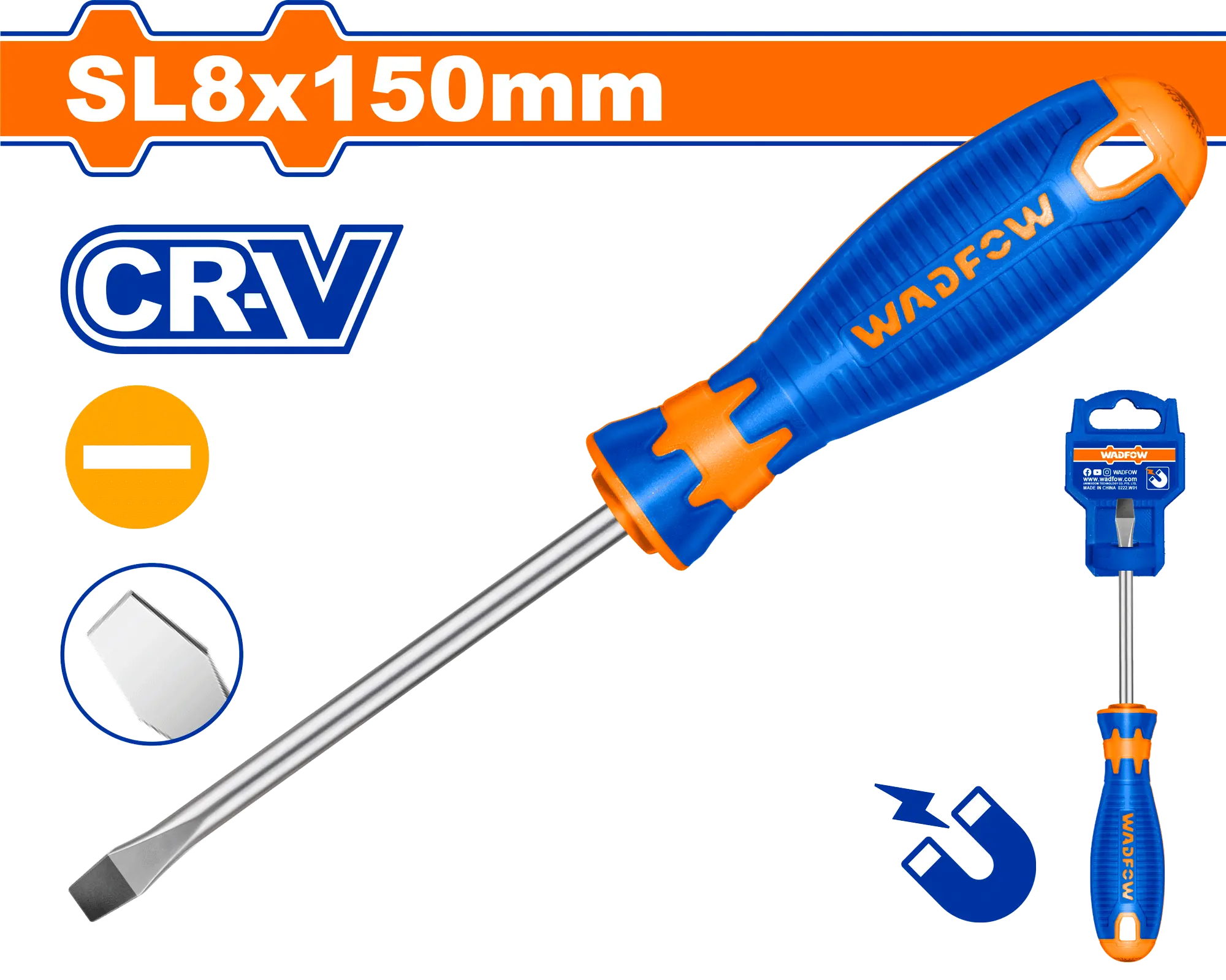 - ¿Para quién es ideal? Para quienes necesitan destornillador plano en mantenimiento, montaje o reparaciones diarias. DESTORNILLADOR PLANO 5/16″ X 6″ BICOLOR FUNDA WADFOW. aporta control y orden al trabajo.