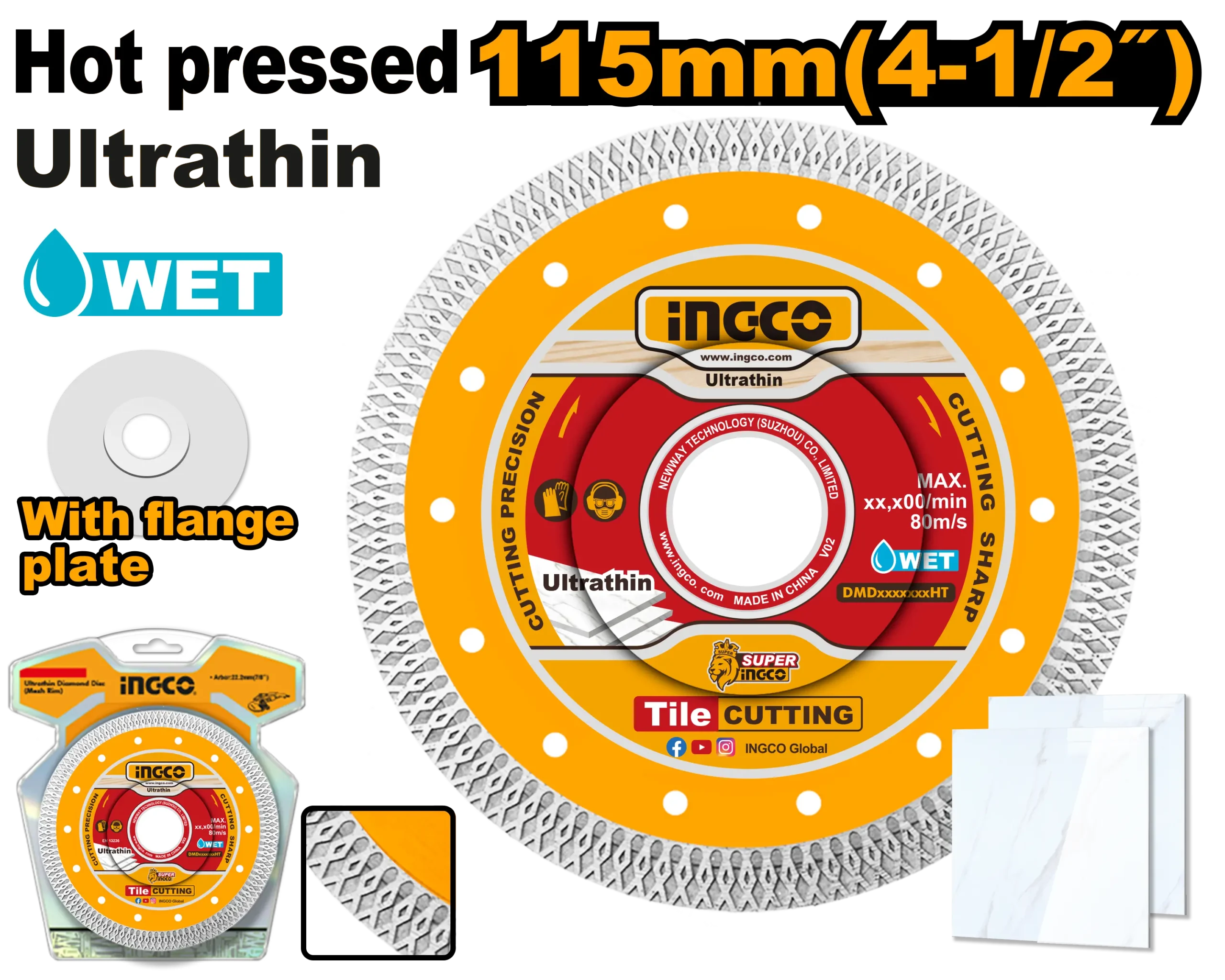 115(4-1/2»)X22.2MM Altura de la hoja 10 mm Espesor de la hoja 1.4 mm Espesor de la matriz 0.8 mm Material: 75Cr1 Con placa de brida Embalado en doble blister