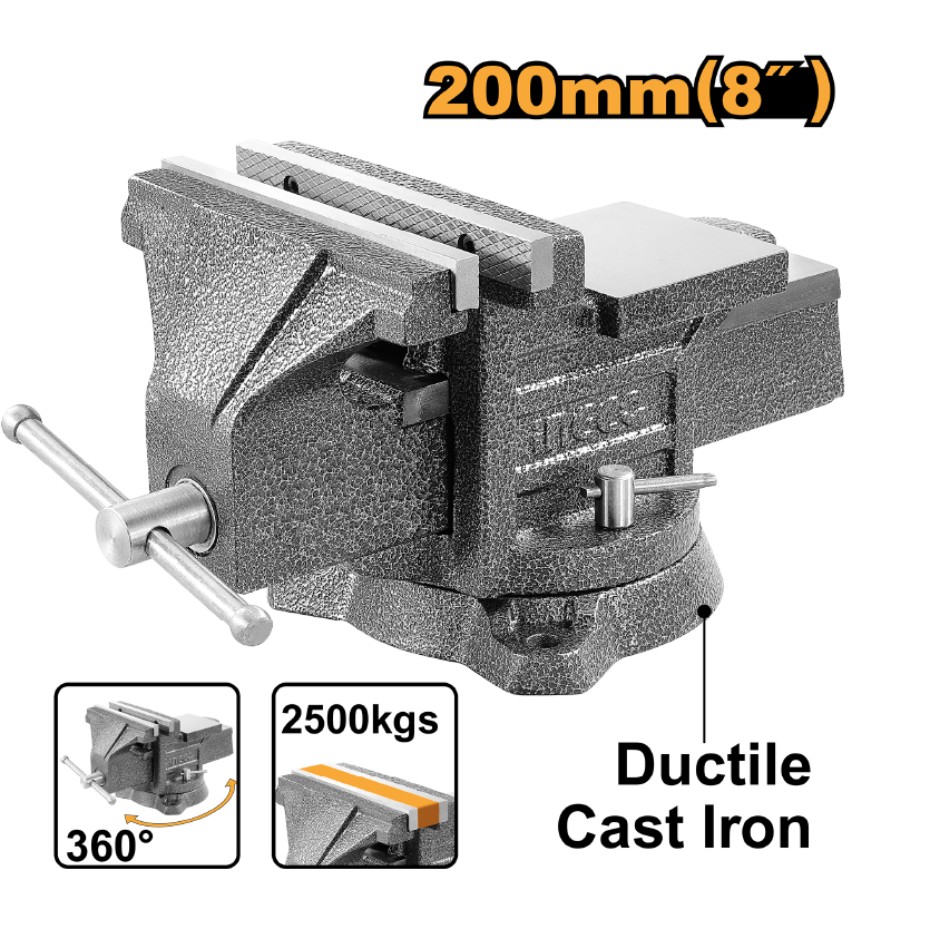 ENTENALLA 8″ INGCO es un producto dentro de la categoría Herramientas manuales. Marca detectada: Ingco. Producto orientado a uso práctico según su nombre y datos detectables, con foco en compatibilidad. Datos detectados: Diámetro: 8″. Nota: Tamaño de la base giratoria: 8 » nPeso: 21kg nFuerza máxima de sujeción: 2500 KGSnCon el yunque nan.