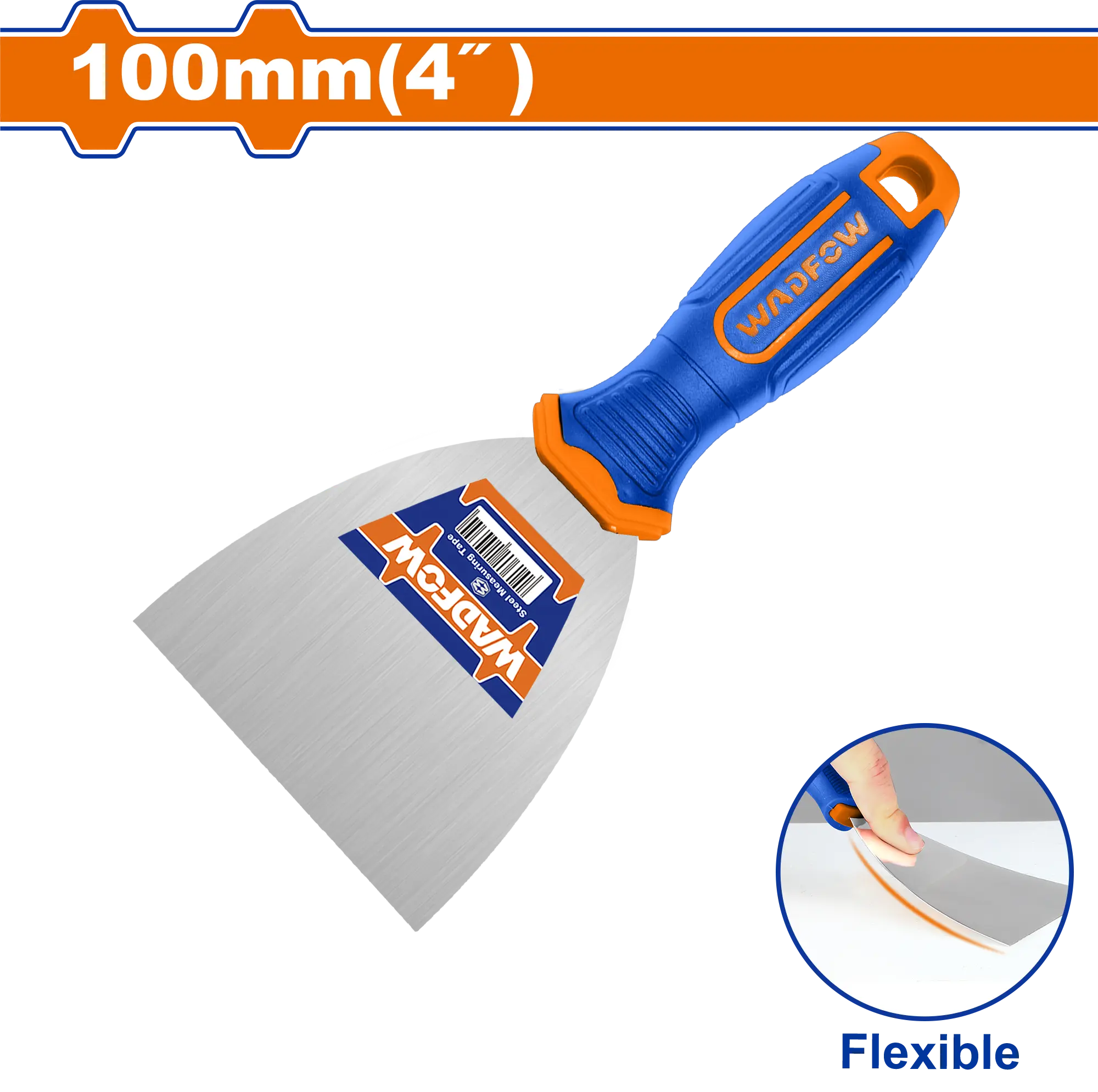 - ¿Para quién es ideal? Para quienes necesitan herramienta manual en mantenimiento, montaje o reparaciones diarias. ESPATULA ACERO INOXIDABLE MANGO PLAS,BICOLOR 4″X100MM WADFOW. aporta control y orden al trabajo.