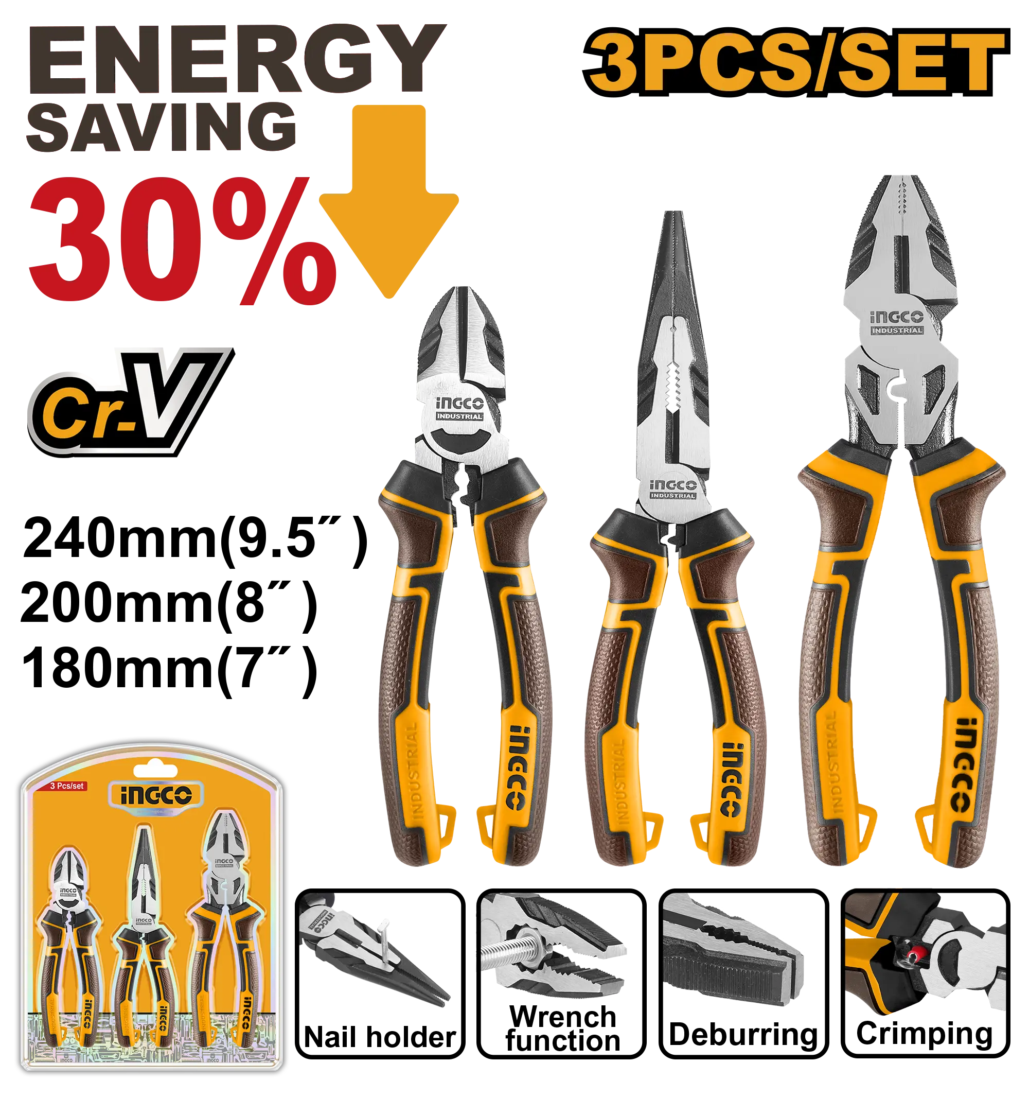 Tamaño: Alicates combinados de alto apalancamiento de 9,5″