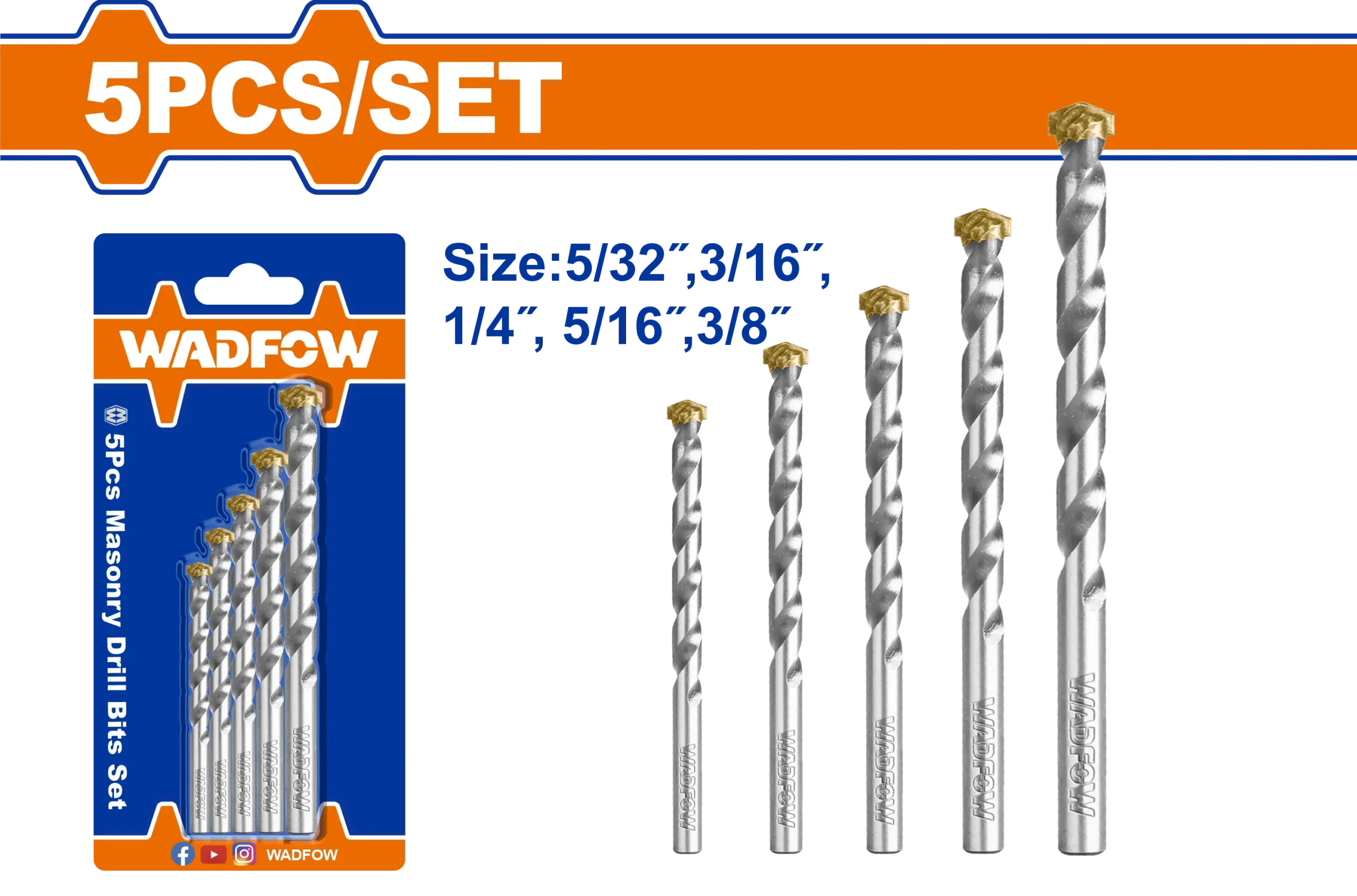 Tamaño: 5/32″, 3/16″, 1/4″, 5/16″, 3/8″.