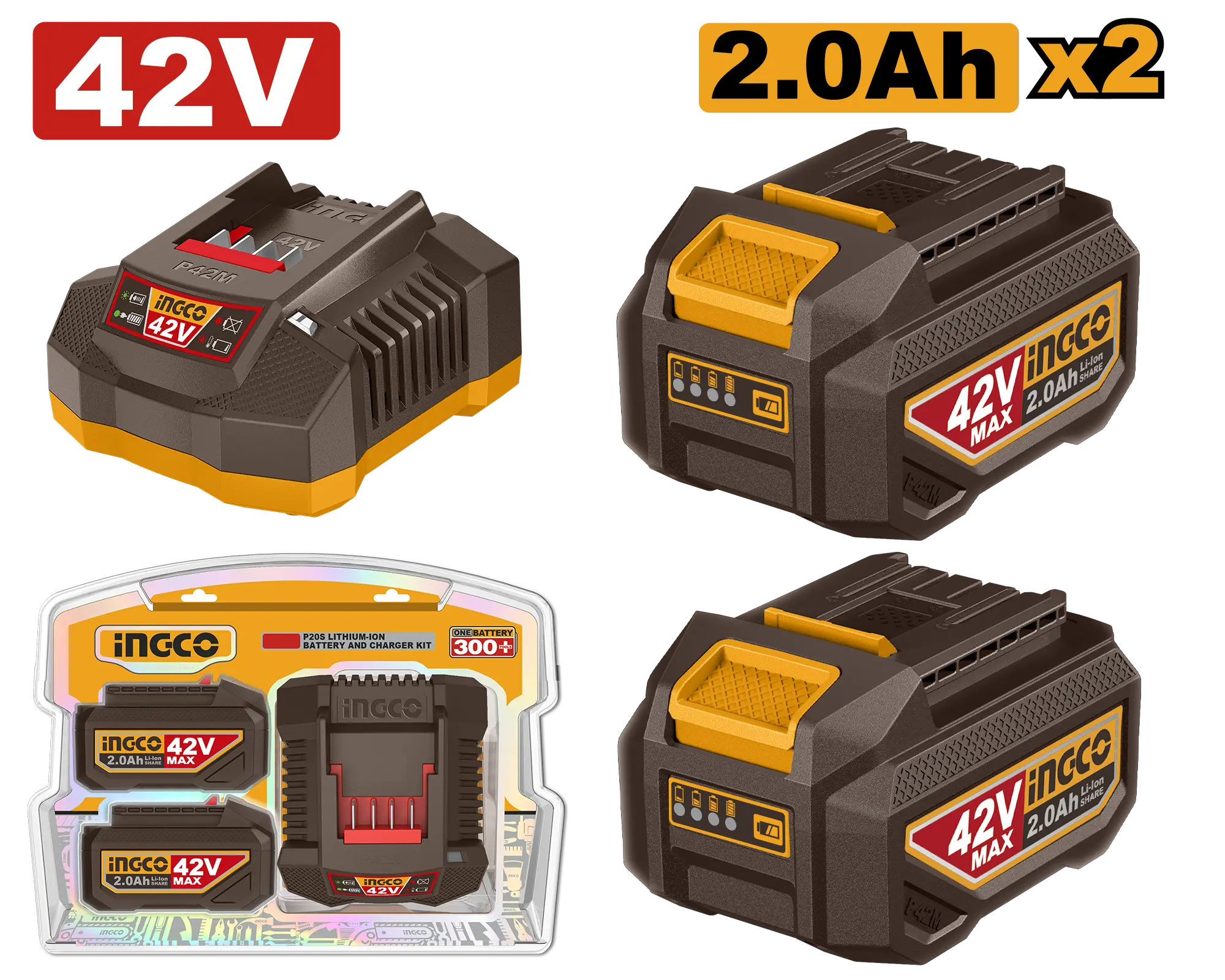 JUEGO DE CARGADOR Y BATERIA DE 2PCS 42V 2.0AH