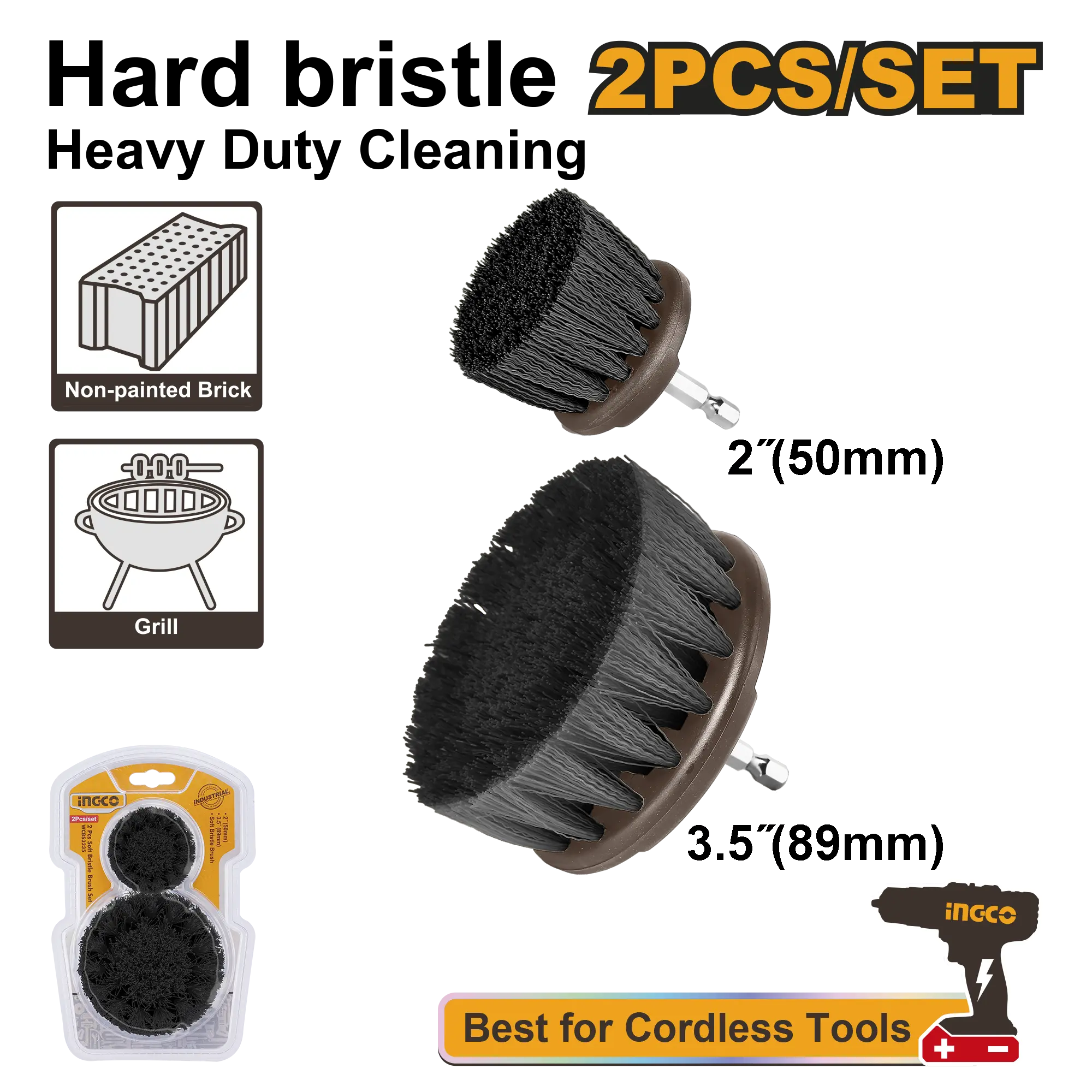 Incluye: 1 cepillo de cerdas duras de 2″. 1 cepillo de cerdas duras de 3.5″ Cerdas duras para hormigón. ladrillo y otras aplicaciones de limpieza difíciles