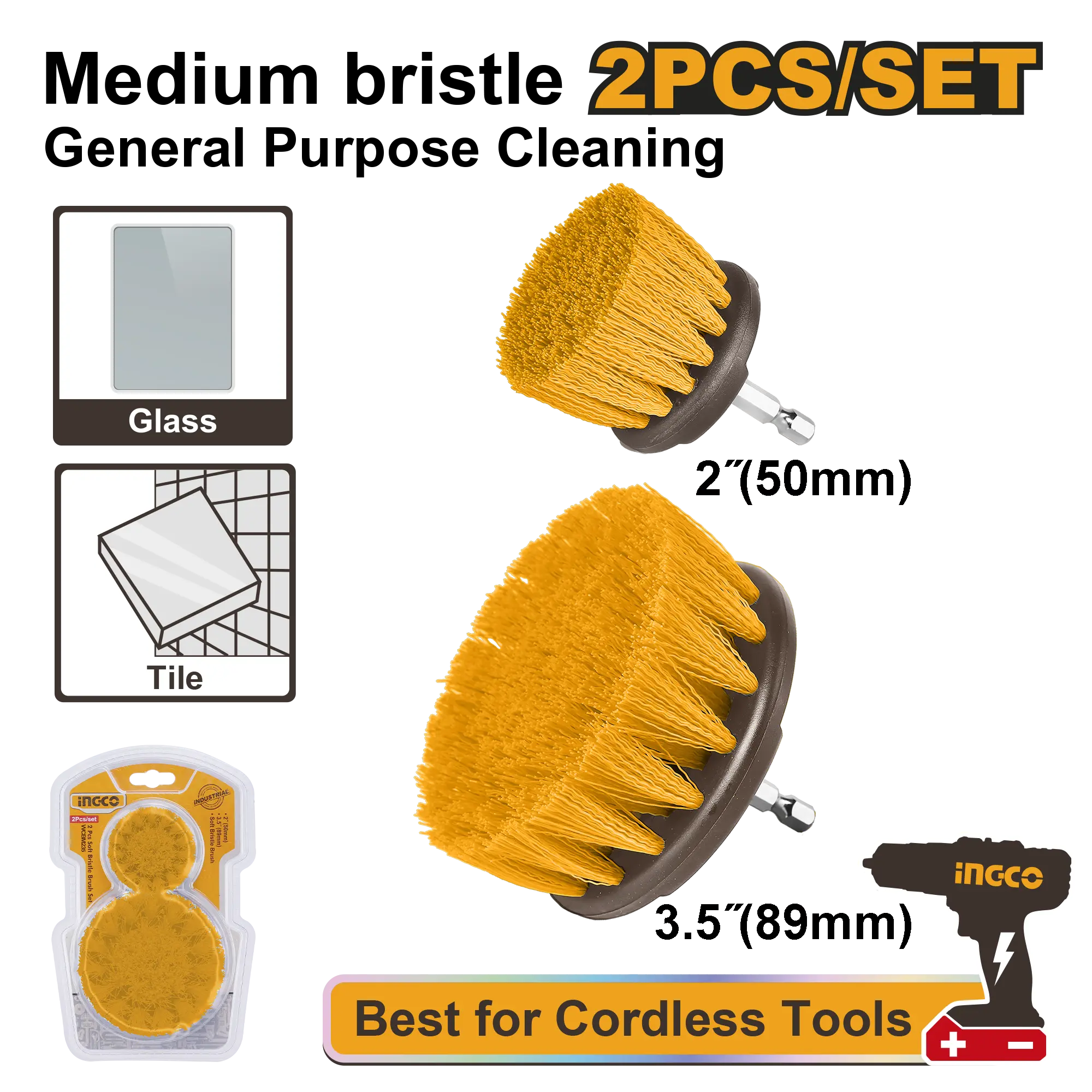 Incluye: 1 cepillo de cerdas medianas de 2″. 1 cepillo de cerdas medianas de 3.5″ Cerdas medianas para aplicaciones de limpieza de cocina. baño y exteriores