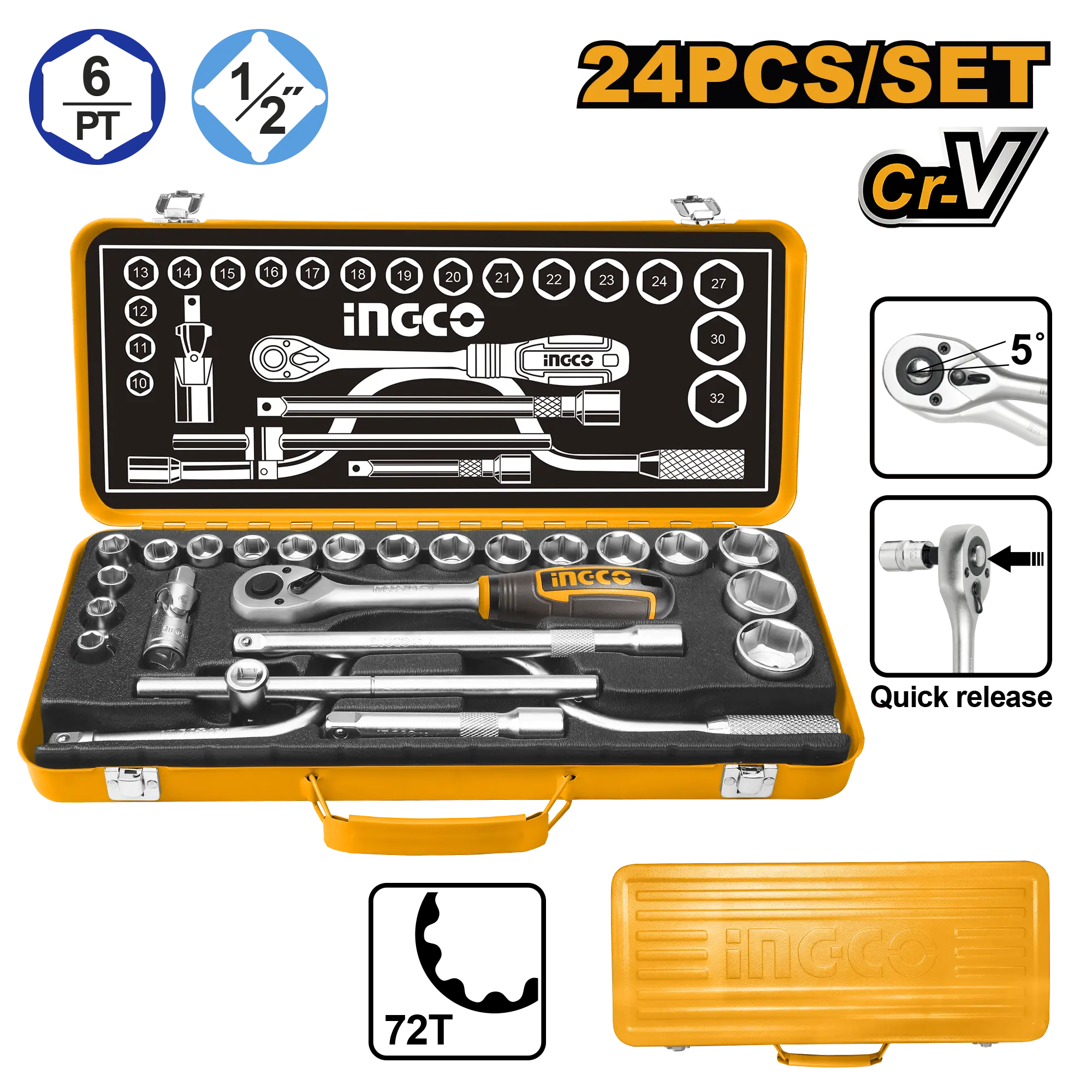 • Producto: JUEGO DE DADOS 24PCS 1/2″ INGCO