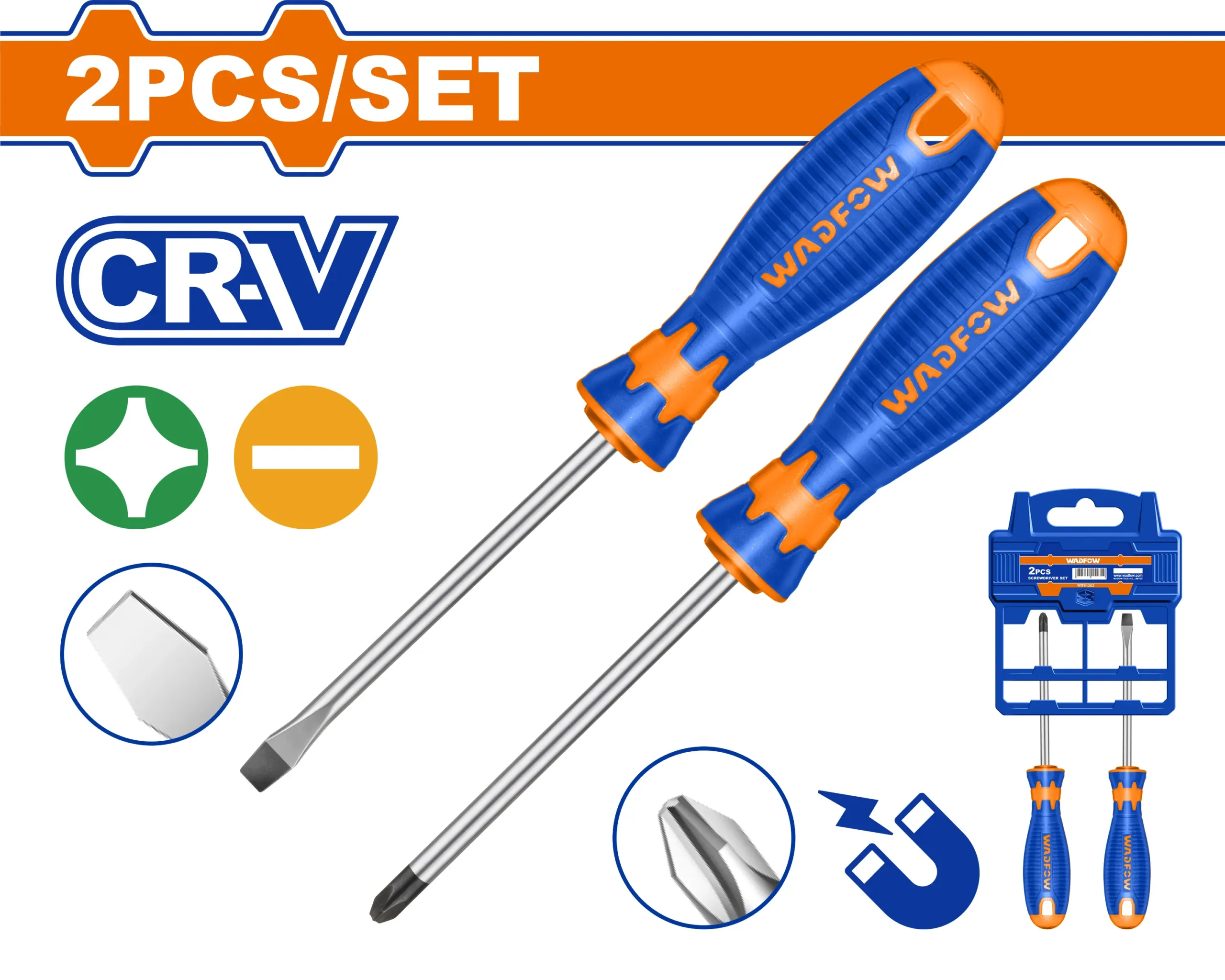- ¿Para quién es ideal? Para quienes necesitan destornillador en mantenimiento, montaje o reparaciones diarias. JUEGO DE DESTORNILLADORES DE 2 PIEZAS 1/4″ X 4 ESTRE+PLA BLIS BICOLOR WADFOW aporta control y orden al trabajo.