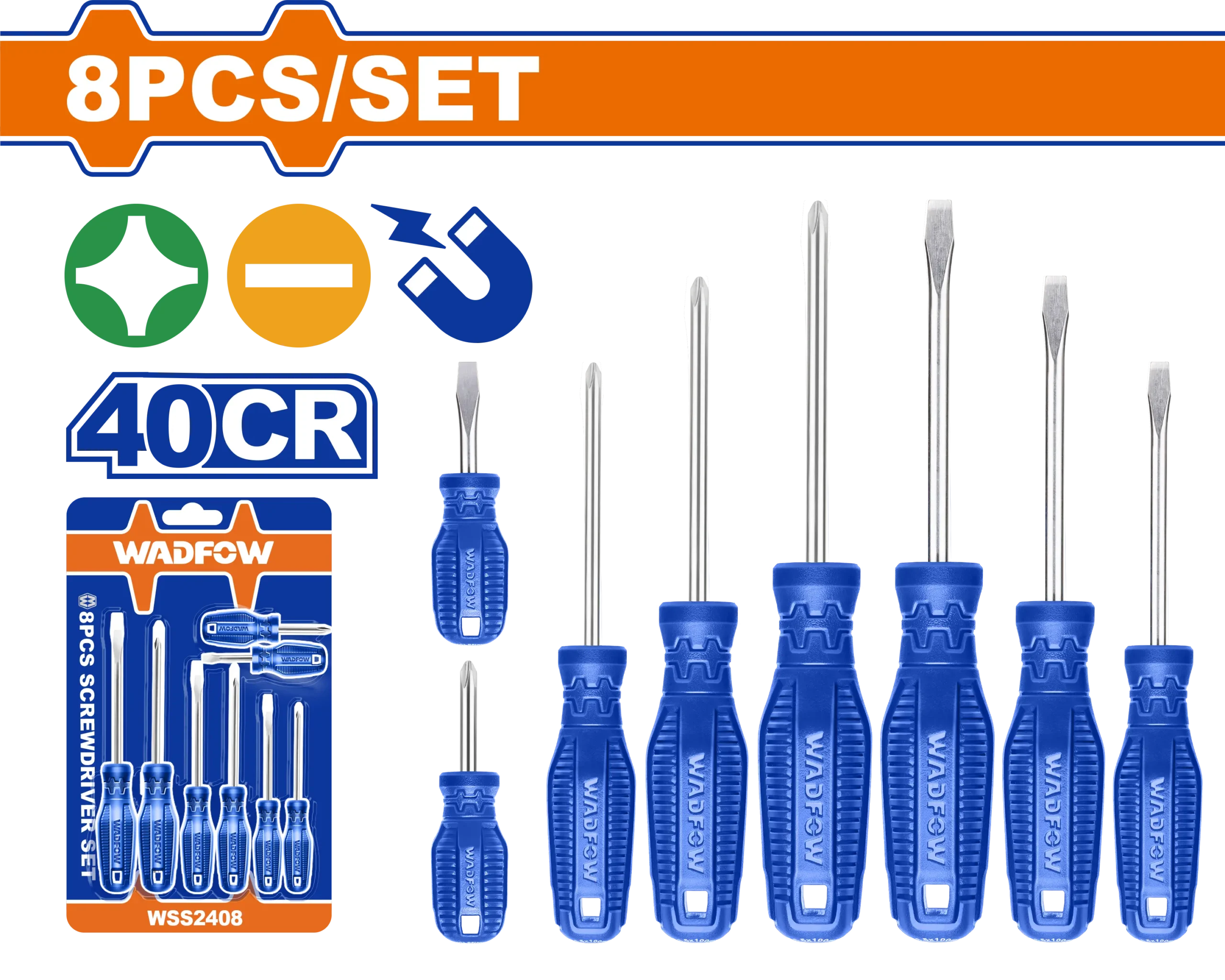 - Producto: JUEGO DE DESTORNILLADORES DE 8 PIEZAS WADFOW