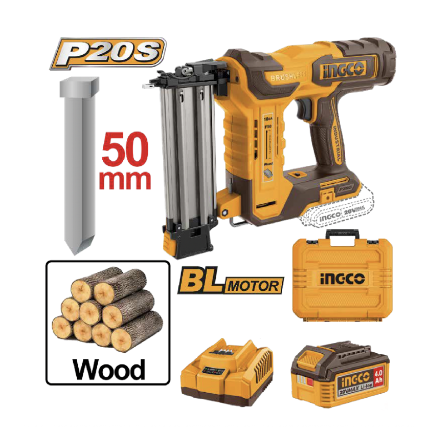 • Producto: KIT CLAVADORA INALAMBRICA DE IONES DE LITIO 50MM 20V INGCO