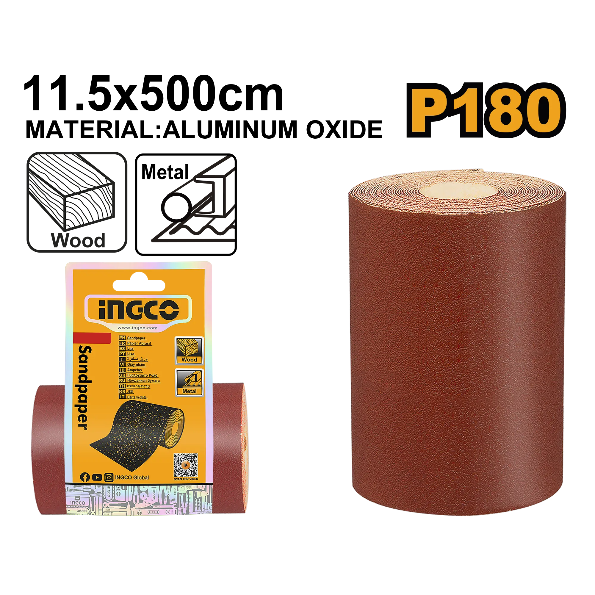 Tamaño: 11,5*500 cm Grano: 180 Material: óxido de aluminio Adecuado para lijar madera, paredes, pintura y plástico. Embalado en tarjeta de papel.