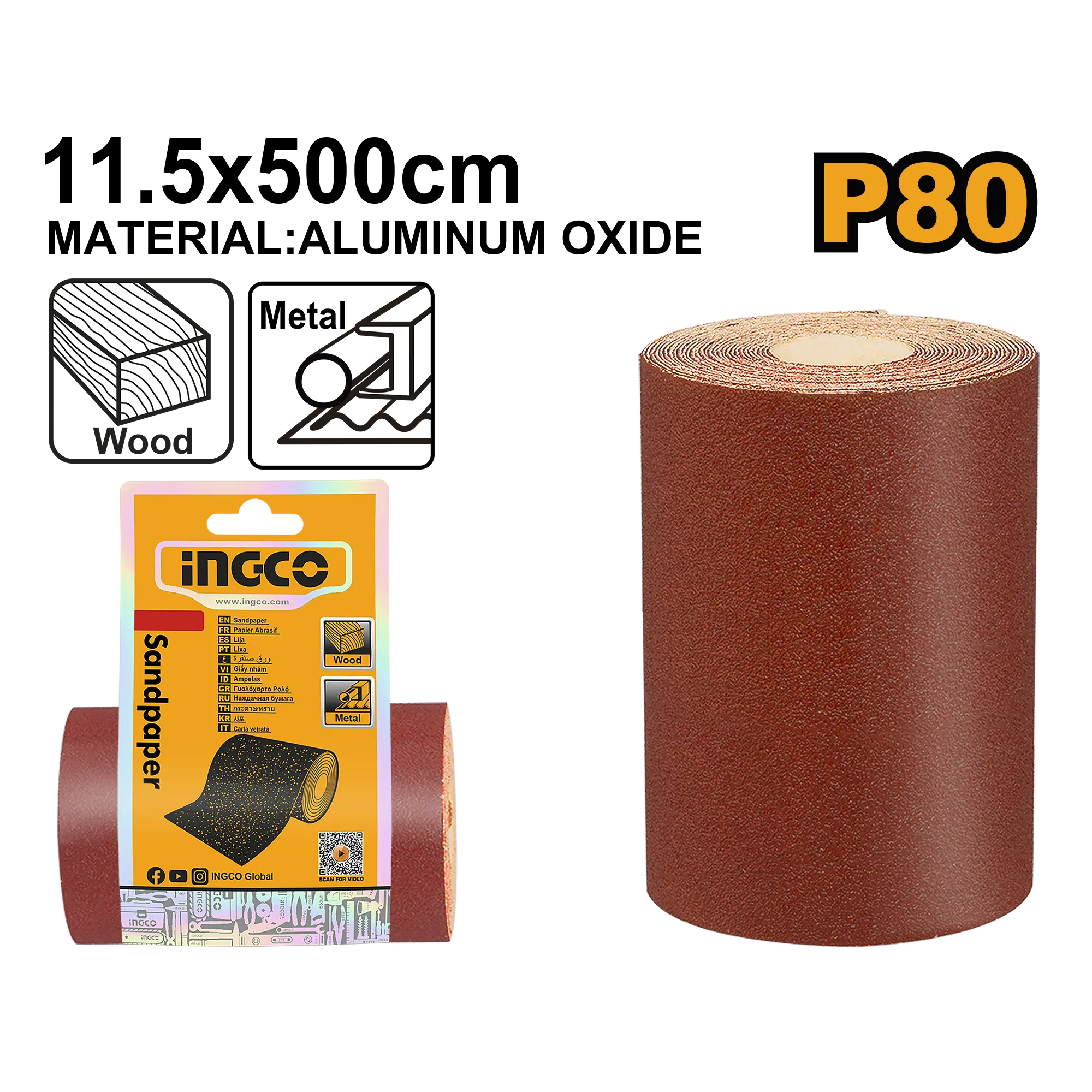 Tamaño: 11,5*500 cm Grano: 80 Material: óxido de aluminio Adecuado para lijar madera, paredes, pintura y plástico. Embalado en tarjeta de papel.