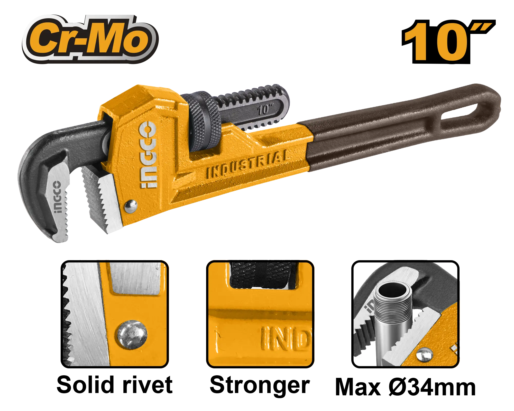 Tamaño: 10 «(250 mm) Diámetro máximo de sujeción: 34 mm Mordaza móvil forjada con acero al carbono de alta calidad Tratamiento inactivado Material del cuerpo: fundición dúctil Acabado negro y pulido Remache macizo
