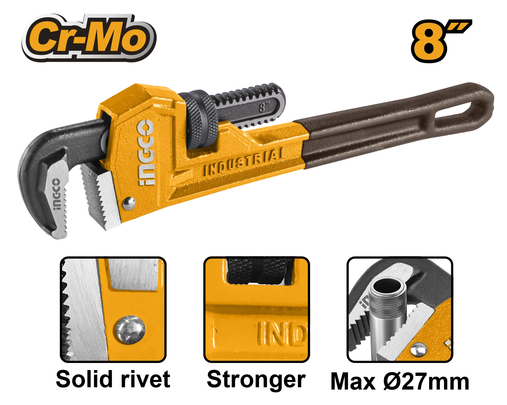 Diámetro máximo de sujeción: 27 mmMordaza móvil forjada con acero al carbono de alta calidad Tratamiento inactivado Material del cuerpo: fundición dúctil Acabado negro y pulido Remache macizo