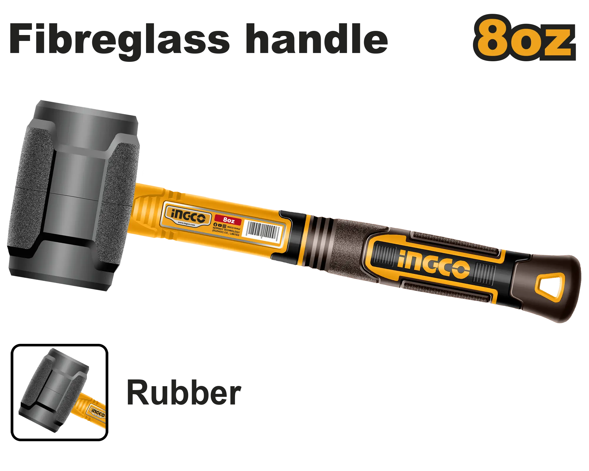 Peso: 8 oz / 220 g Cabeza de martillo de goma Sin chispa Caras de plástico que no dañan Proteger la superficie de la pieza de trabajo Mango de fibra de vidrio de diseño único