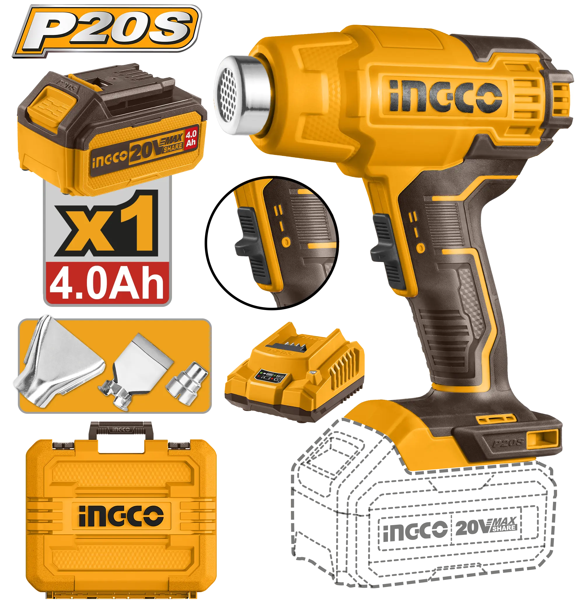Temperatura: 300/550 °C Flujo de aire: 100/200 L/min Voltaje de carga: 110-120 V~50/60 Hz Incluye: 1 paquete de baterías de 4,0 Ah (FBLI2002) 1 cargador (UFCLI2001) 1 boquilla de reducción 1 boquilla reflectora 1 boquilla plana