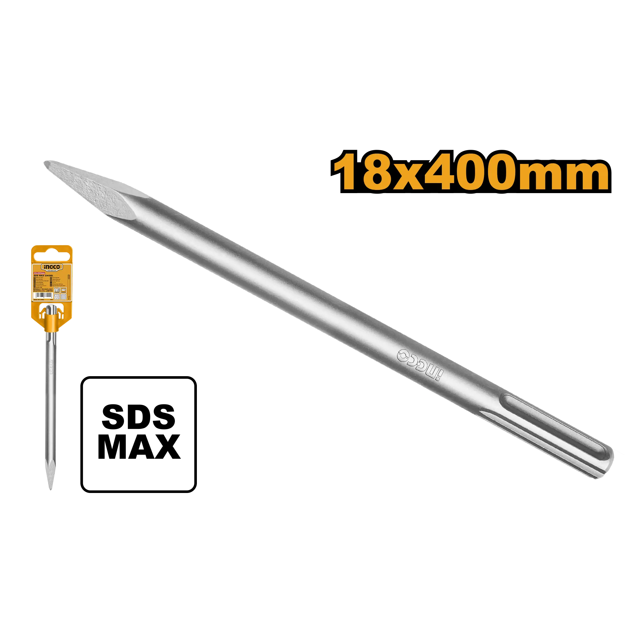 PUNTA SDS MAX 18X400MM INGCO es un producto dentro de la categoría Accesorios para herramientas. Marca detectada: Ingco. Accesorio o repuesto para complementar una herramienta y mantener su rendimiento. Datos detectados: Medida: 400 mm.