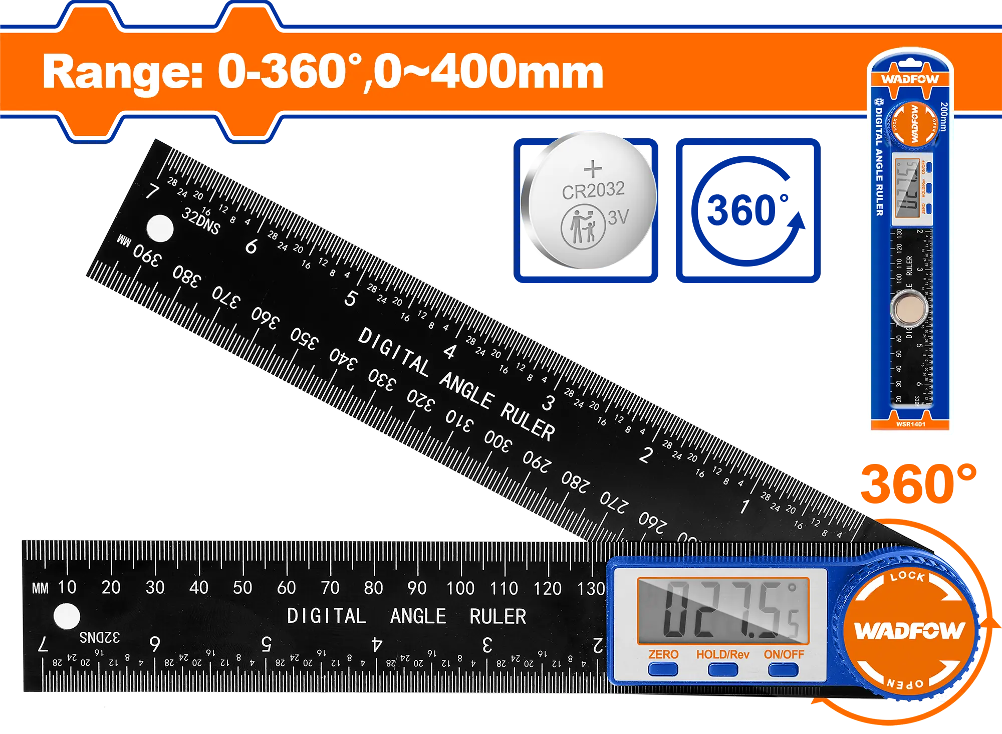 Rango: 0-360°, 0-200 mm, 0~400 mm (180°)