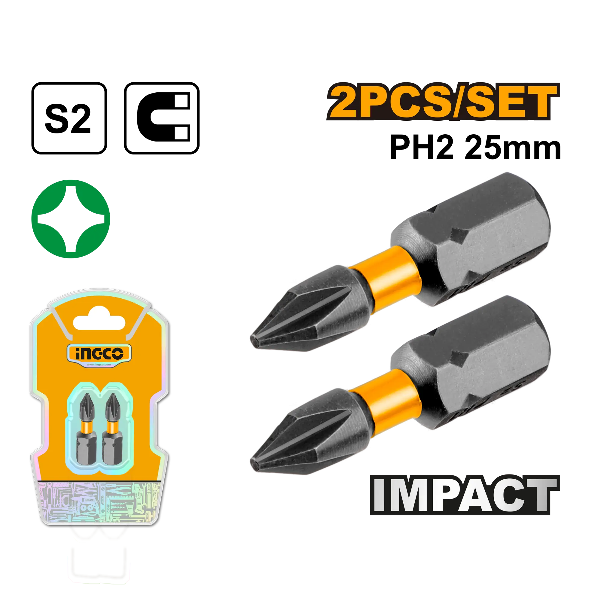 Puntas de destornillador de impacto PH2.25mm.2 piezas/juego Acero industrial S2 Superficie negra con imán Envasado en doble blister