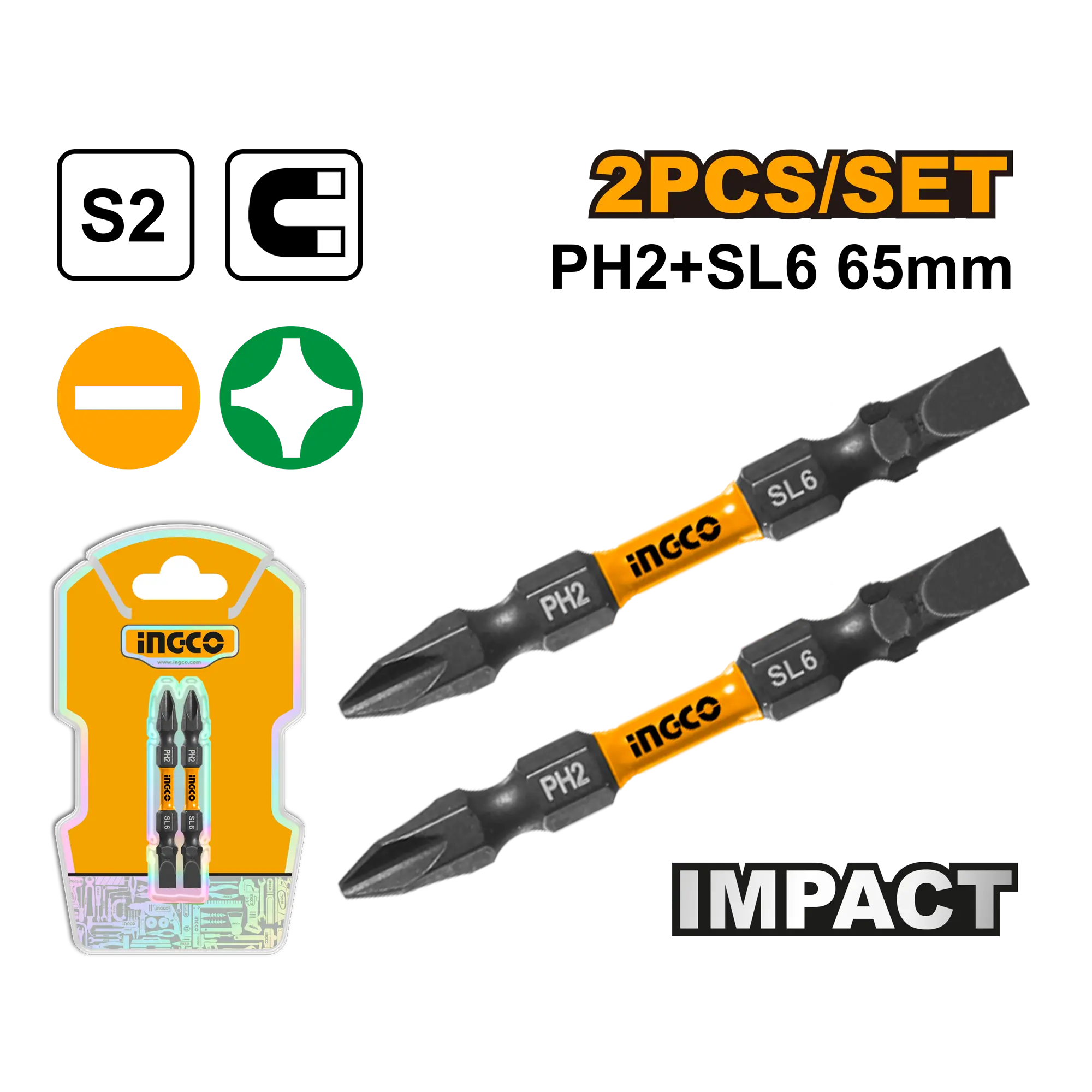 Puntas de destornillador de impacto PH2+SL6.65mm