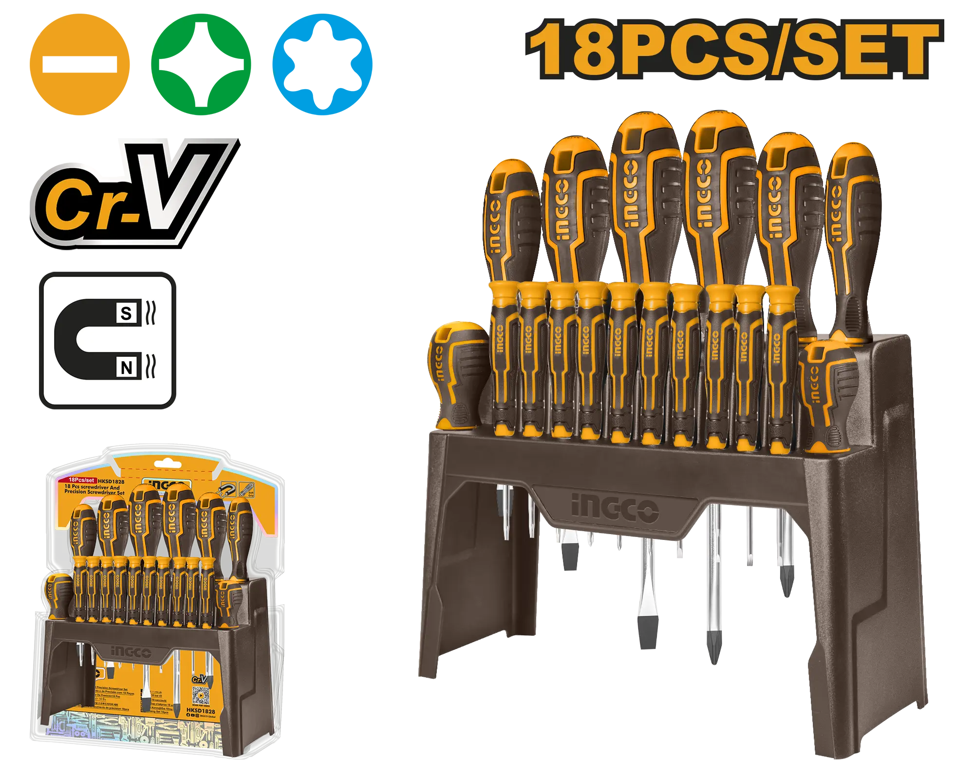 Juego de 18 destornilladores y destornilladores de precisión Mango de nuevo diseño Material: CR-V, hoja redonda 18 destornilladores: 1 SL5.5*5*75 1 SL6.5*6*100 1 SL8.0*8*150 1 SL6.5*6*38 1 PH1*5*75 1 PH2*6*100 1 PH3 * 8*150 1 Uds PH2*6*38 10 Uds destornillador de precisión SL1.5*50 SL2*50 SL2.5*50 SL3*50 PH000*50 PH00*50 PH0*50 T6*50 T8*50 T10*50 con 1 Uds plástico marco