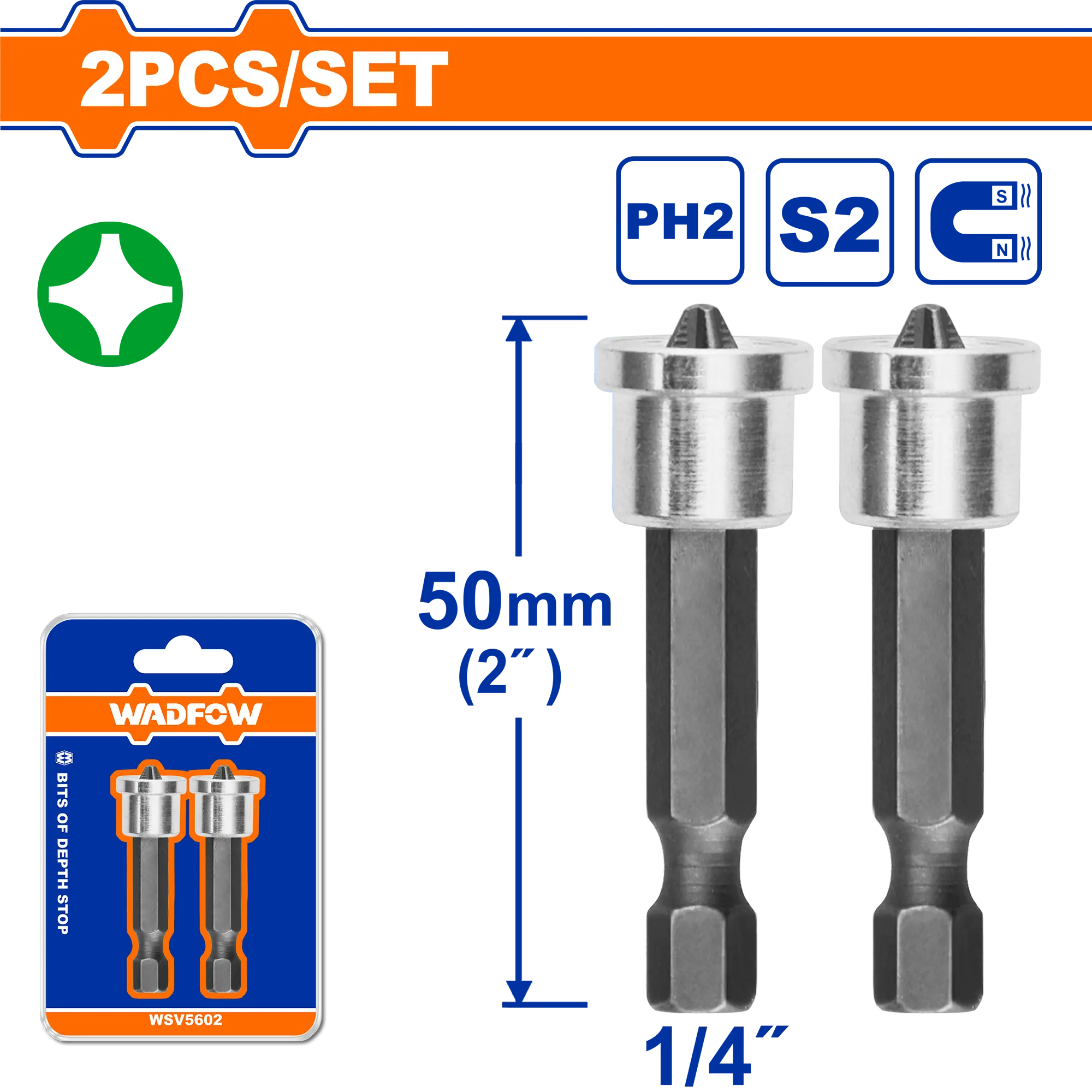 - Producto: SET DE PUNTAS MAGNETICAS CON TOPE 50MM BLISTER X 2 UND WADFOW